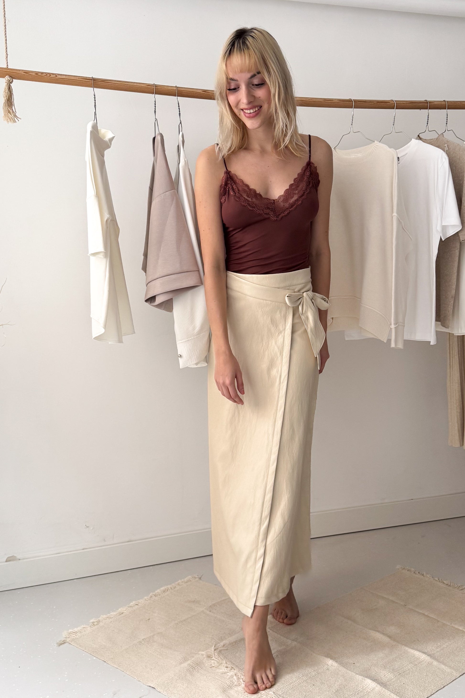A modell 174 cm magas, a body pedig egyméretes.