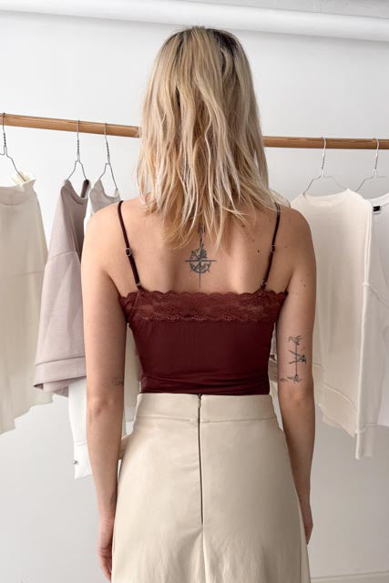 Állítható pántos csípkés body-fügebarna