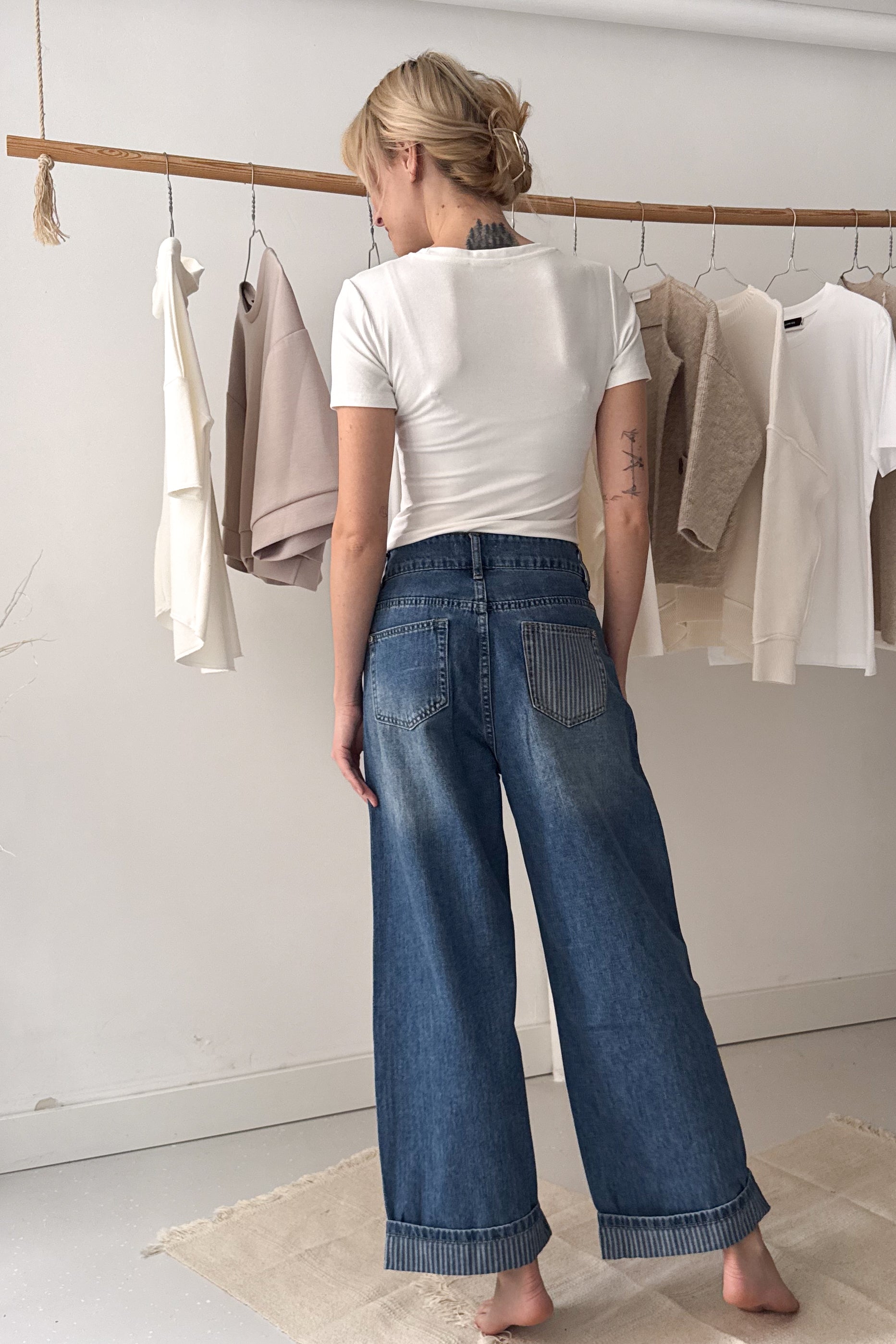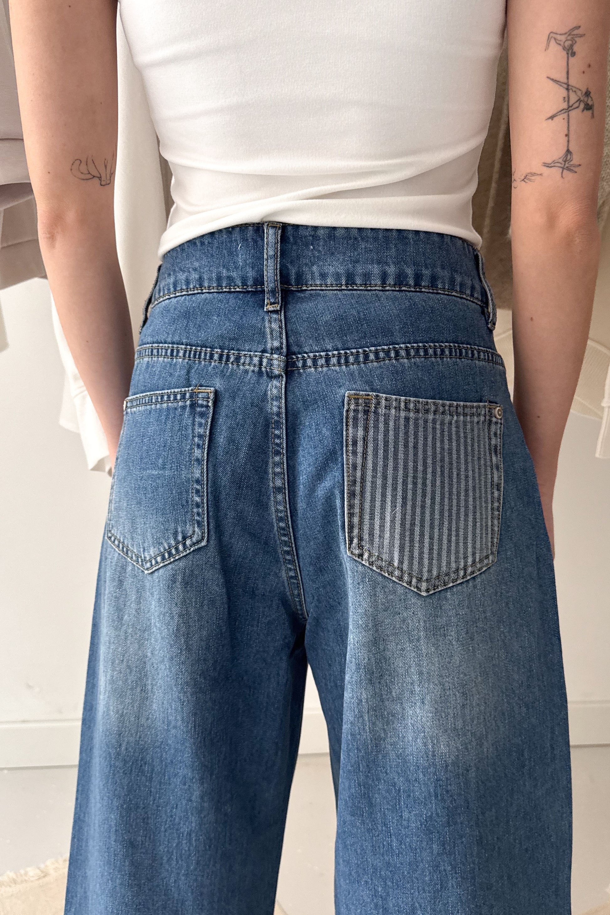 Ballon farmernadrág csíkos részletekkel