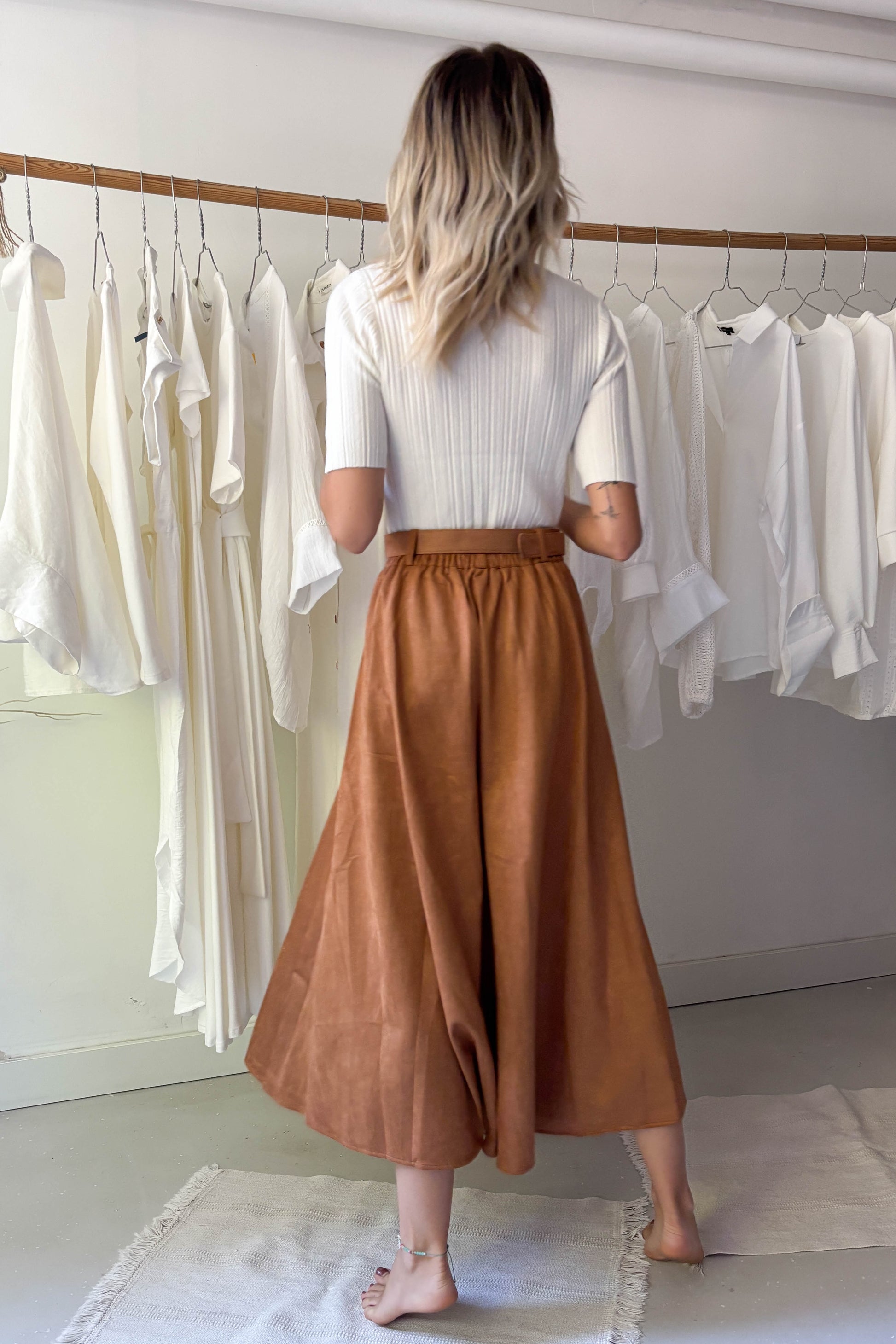 A modell 174 cm magas, a felső pedig S/M méret.