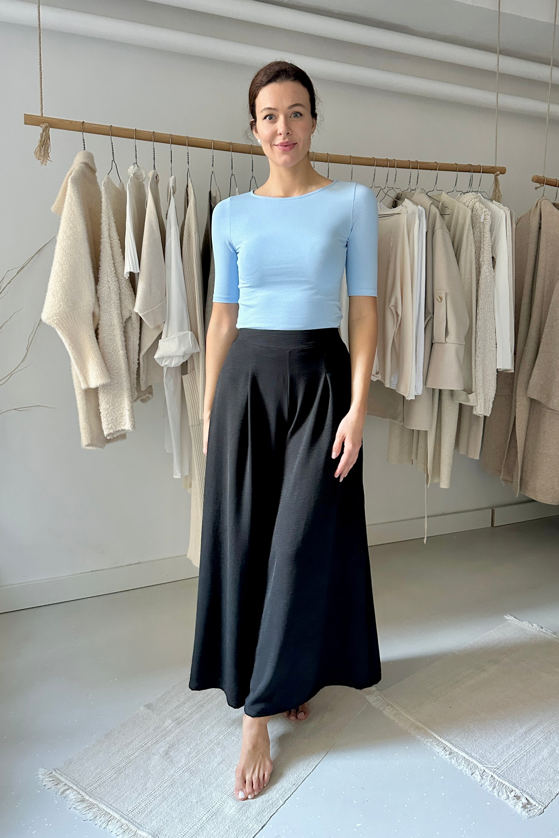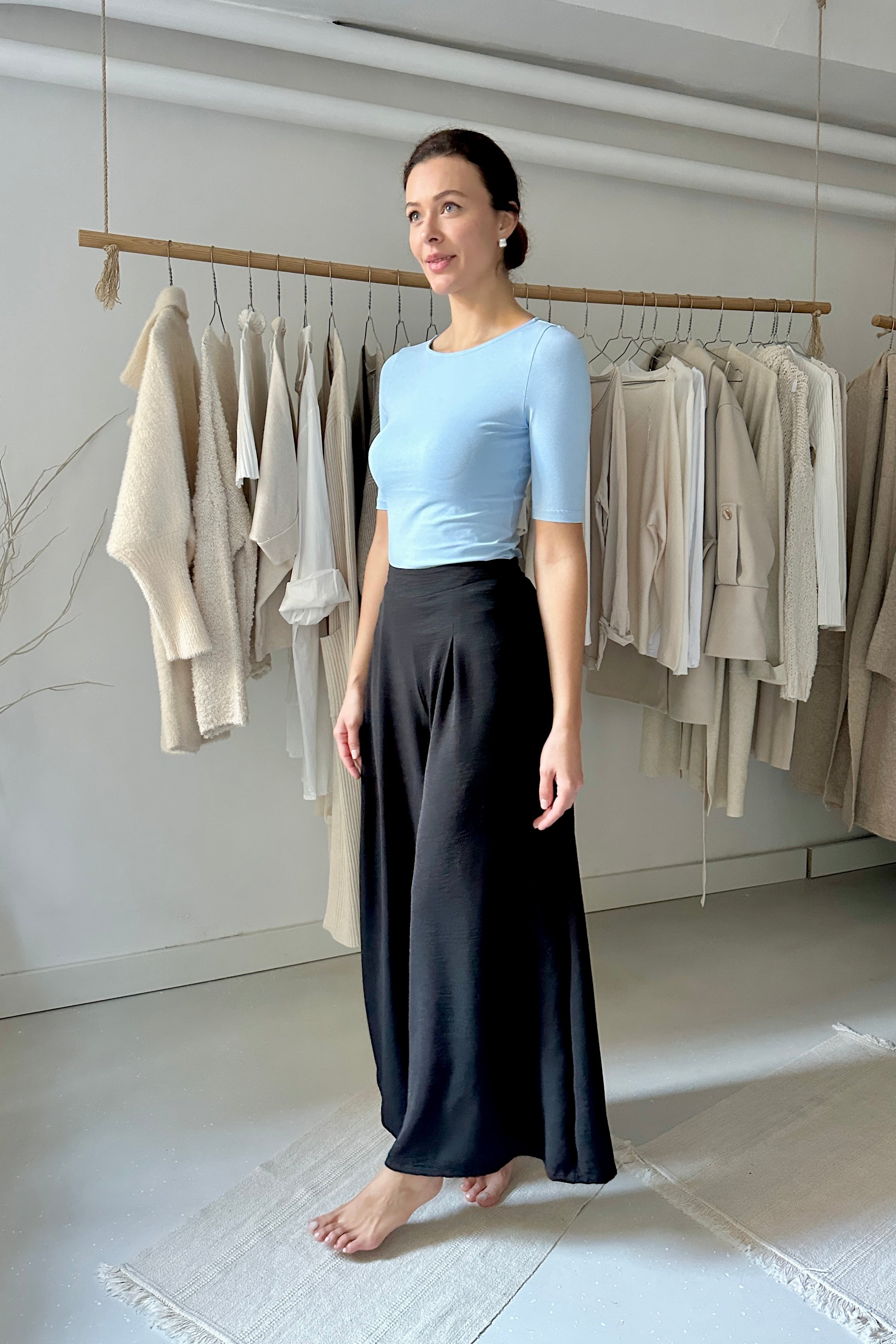 95%  pamut, 5% elasztán - pamut jersey. Elasztikus, puha prémium minőségű pamutTesthezálló szabásának köszönhetően igazán csinos viselet. Gépben 30 fokon mosható. A modell 177 cm magas.