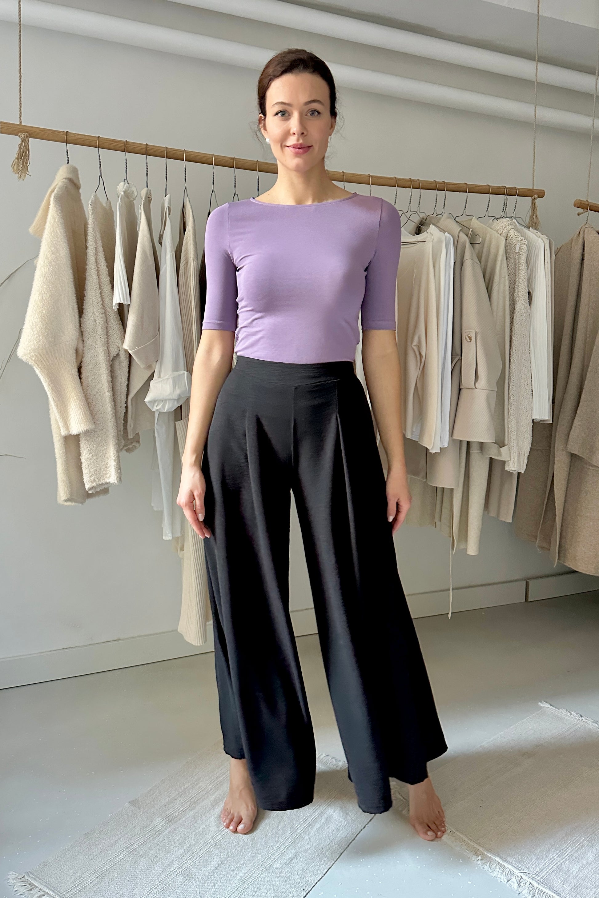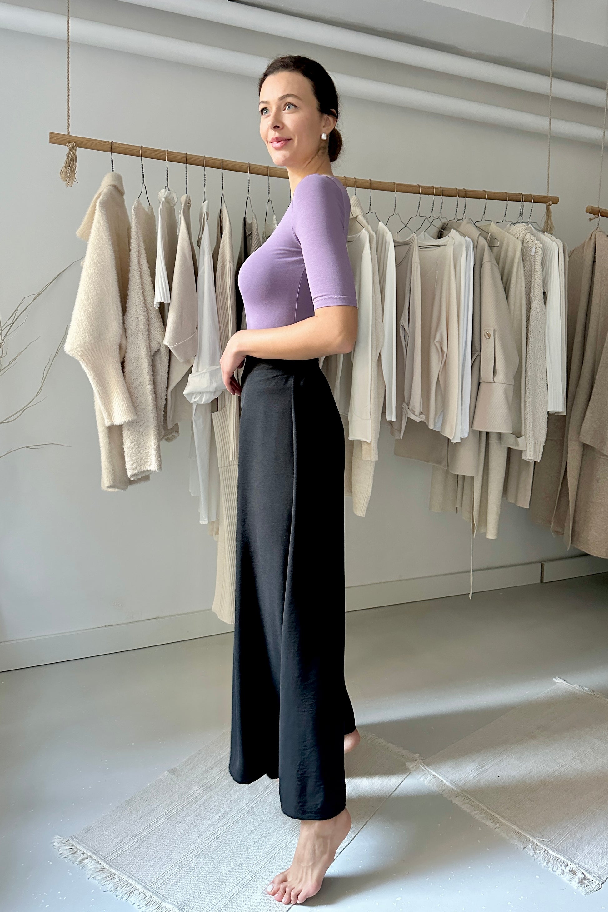 95%  pamut, 5% elasztán - pamut jersey. Elasztikus, puha prémium minőségű pamut. Testhezálló szabásának köszönhetően igazán csinos viselet. Gépben 30 fokon mosható. A modell 177 cm magas.