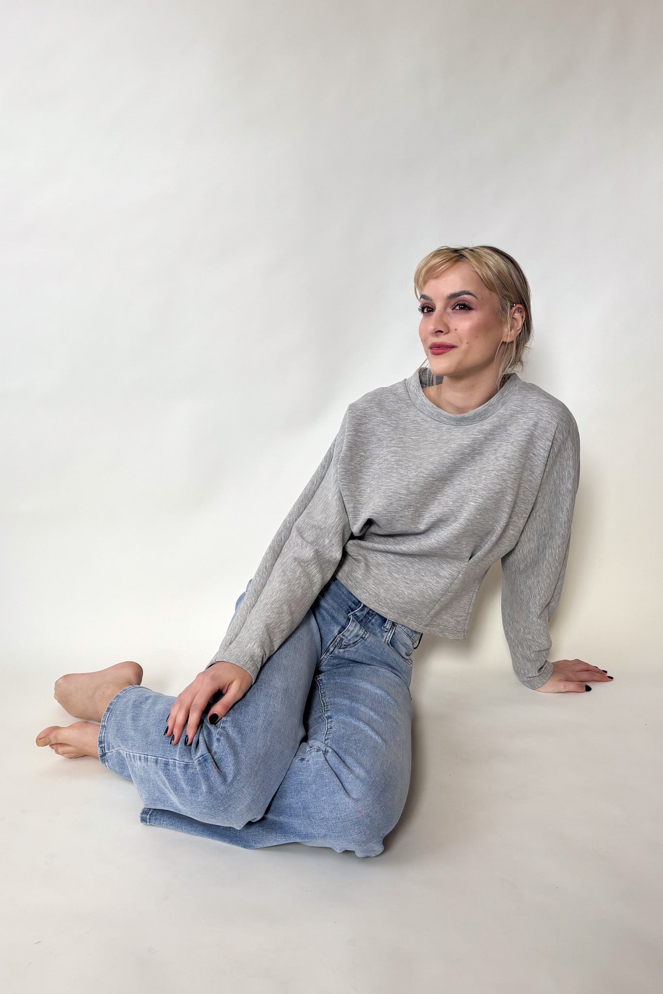 Alul húzott szürke pulóver