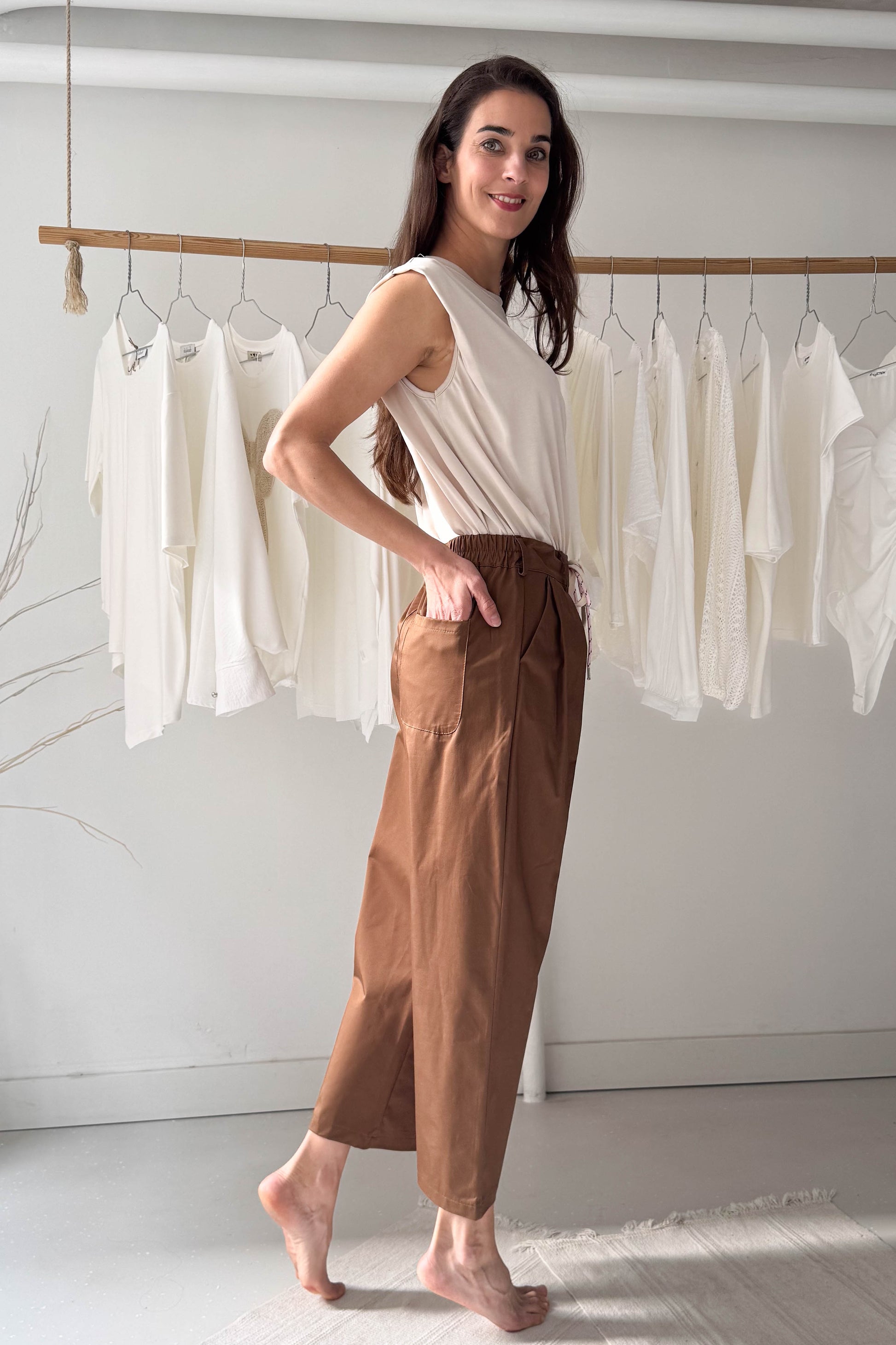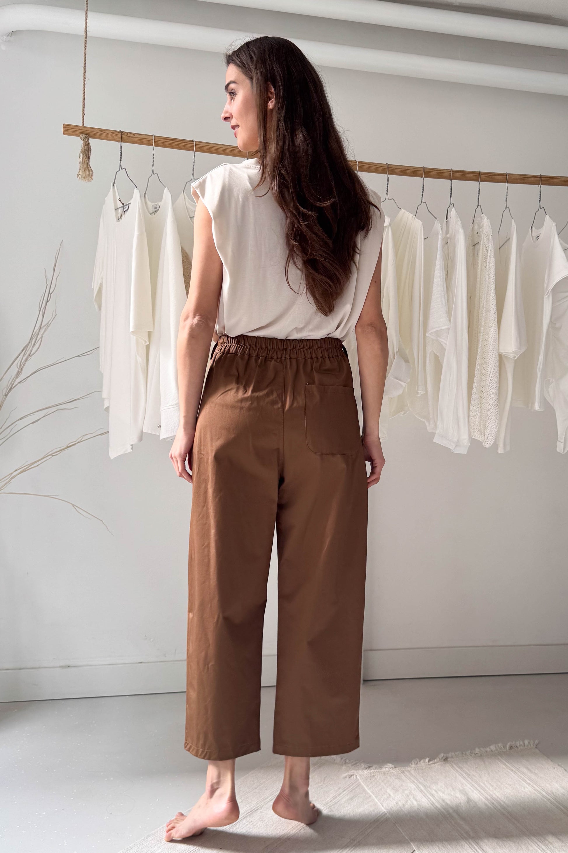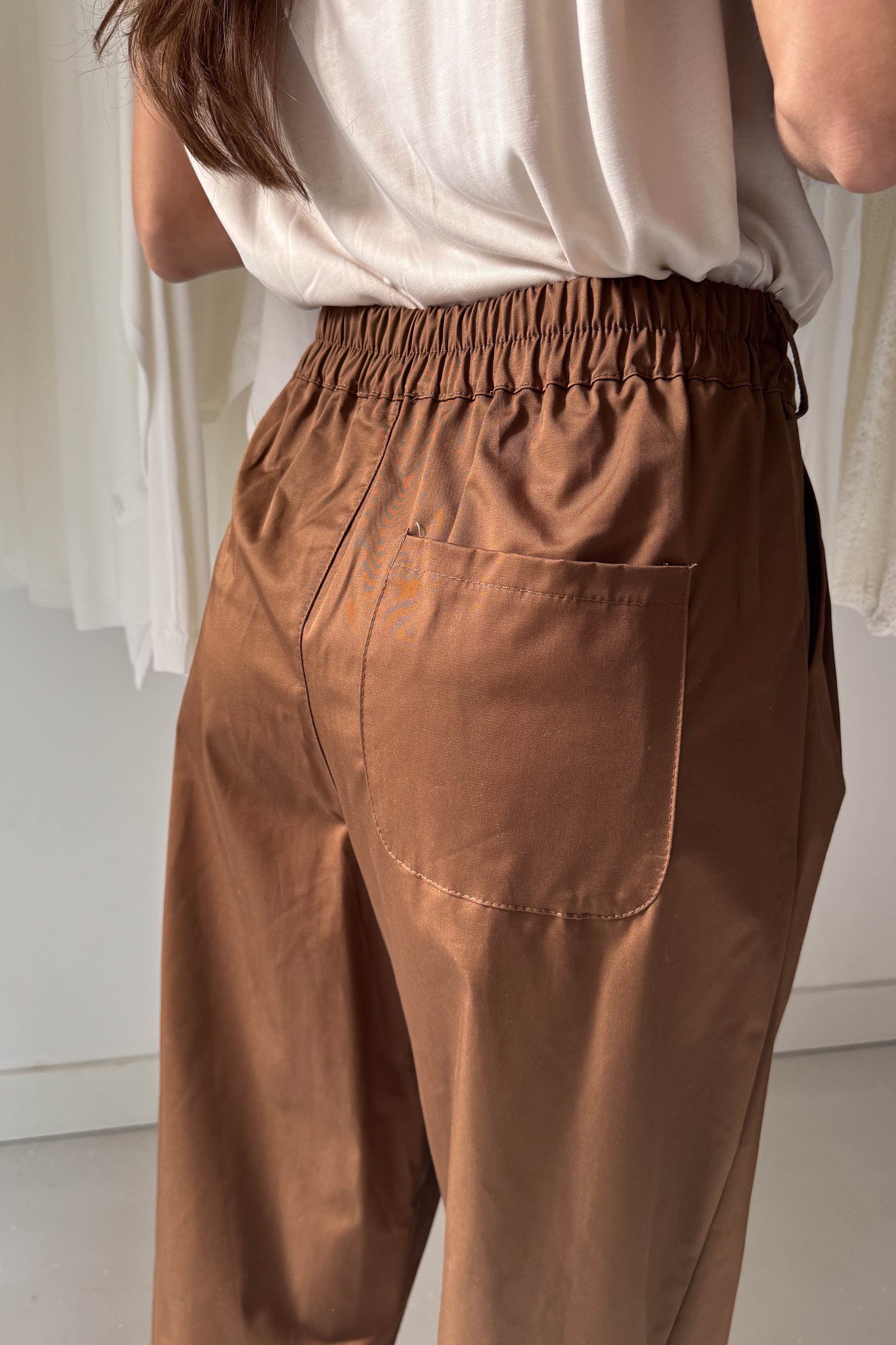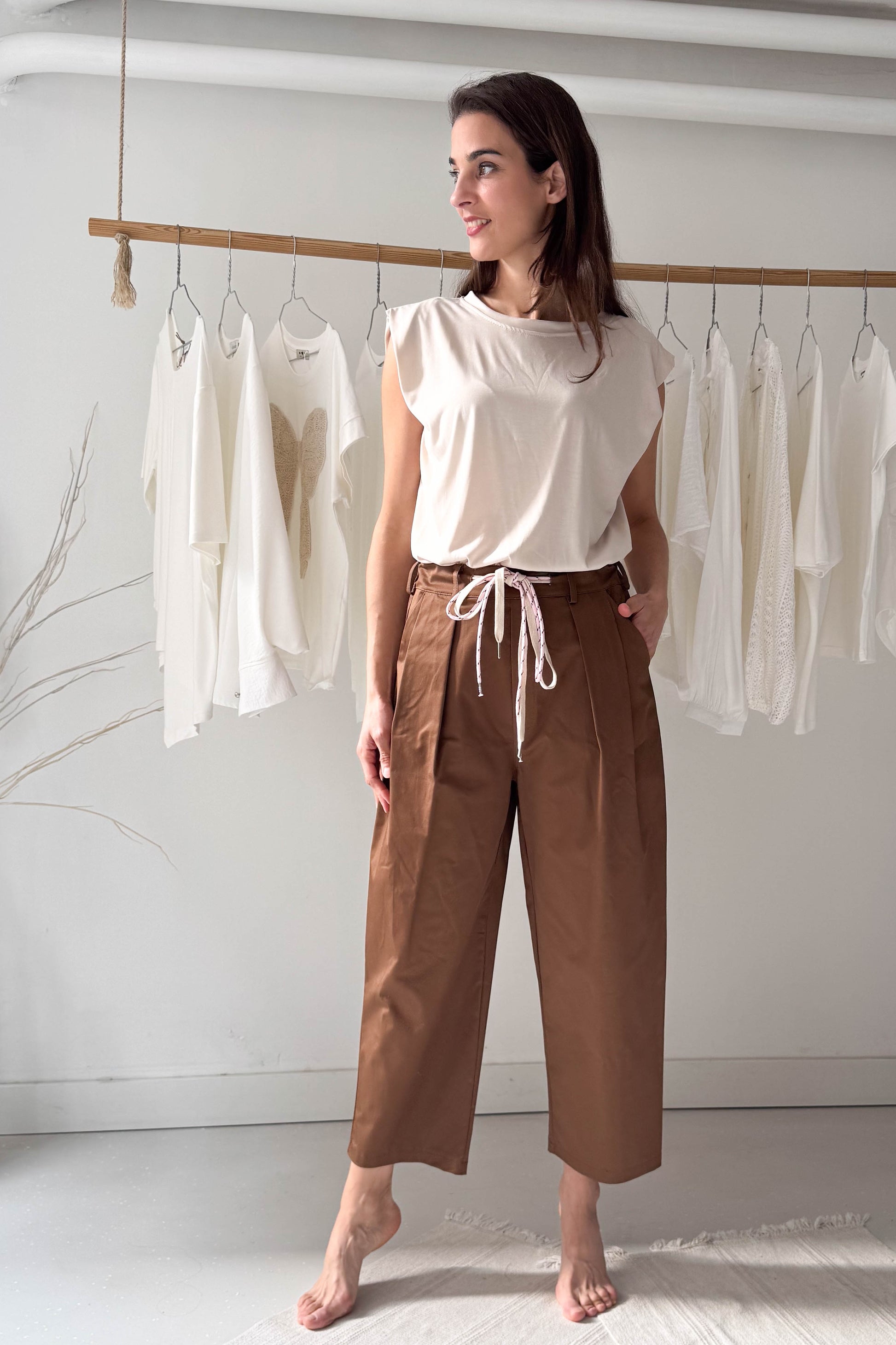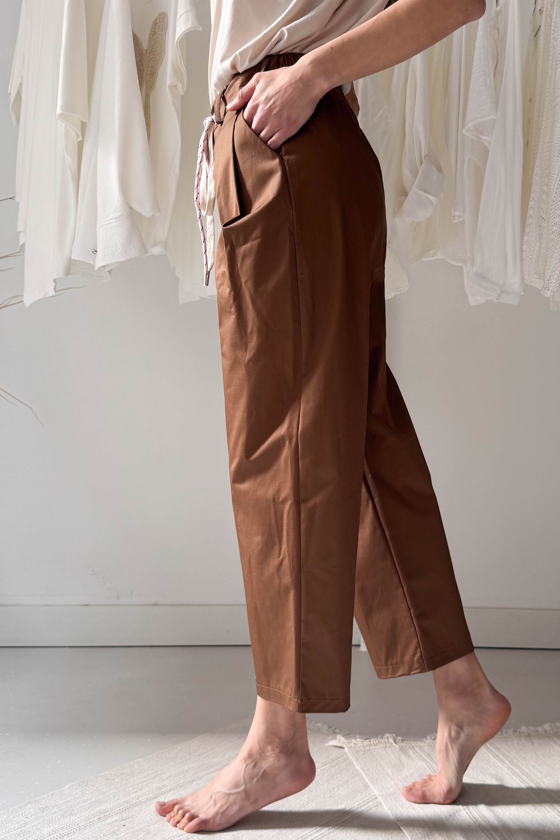 Mazsolabarna pamutkarton nadrág rózsaszín kötővel