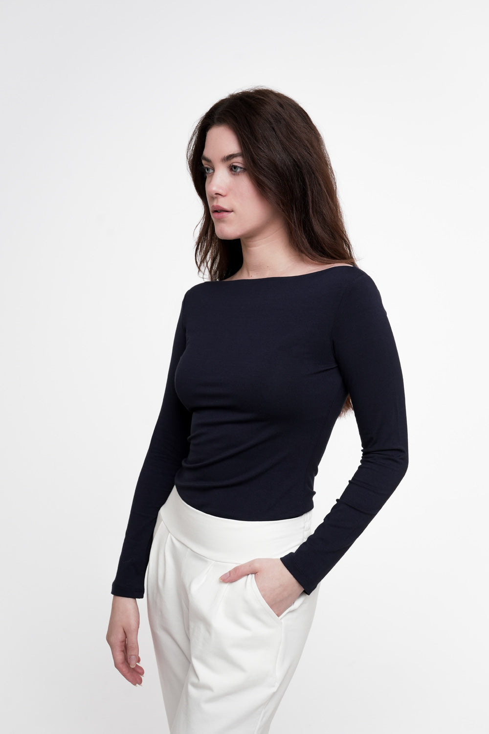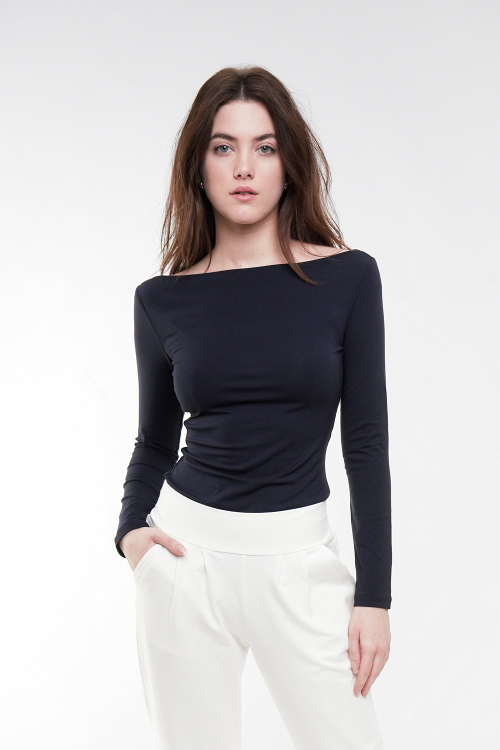 95 pamut 5% elasztán - pamut jersey. Elasztikus, puha extra minőségű pamut. Egyenes vonalú nyakmegoldásával, hosszú ujjával, hosszú derékszabásával, igazi tavaszi/őszi/téli alapdarab. Gépben 30 fokon mosható. A modell 170 cm magas.