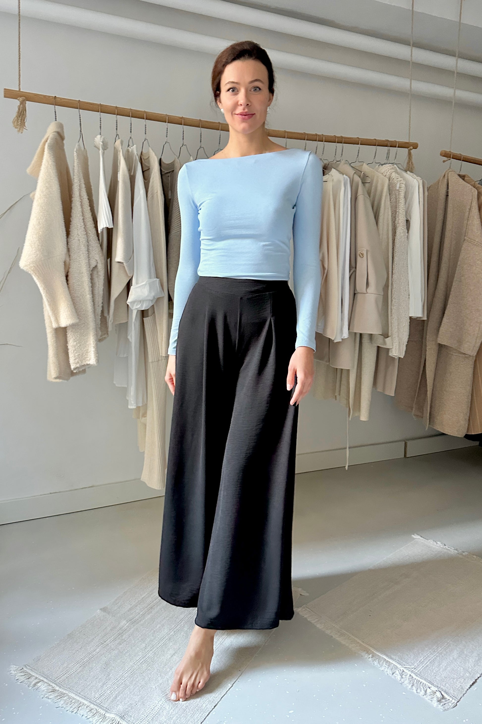 95% pamut, 5% elasztán - pamut jersey. Elasztikus, puha prémium minőségű pamut. Egyenes vonalú nyakmegoldásával, hosszú ujjával, hosszú derékszabásával, igazi tavaszi/őszi/téli alapdarab. Gépben 30 fokon mosható. A modell 177 cm magas.