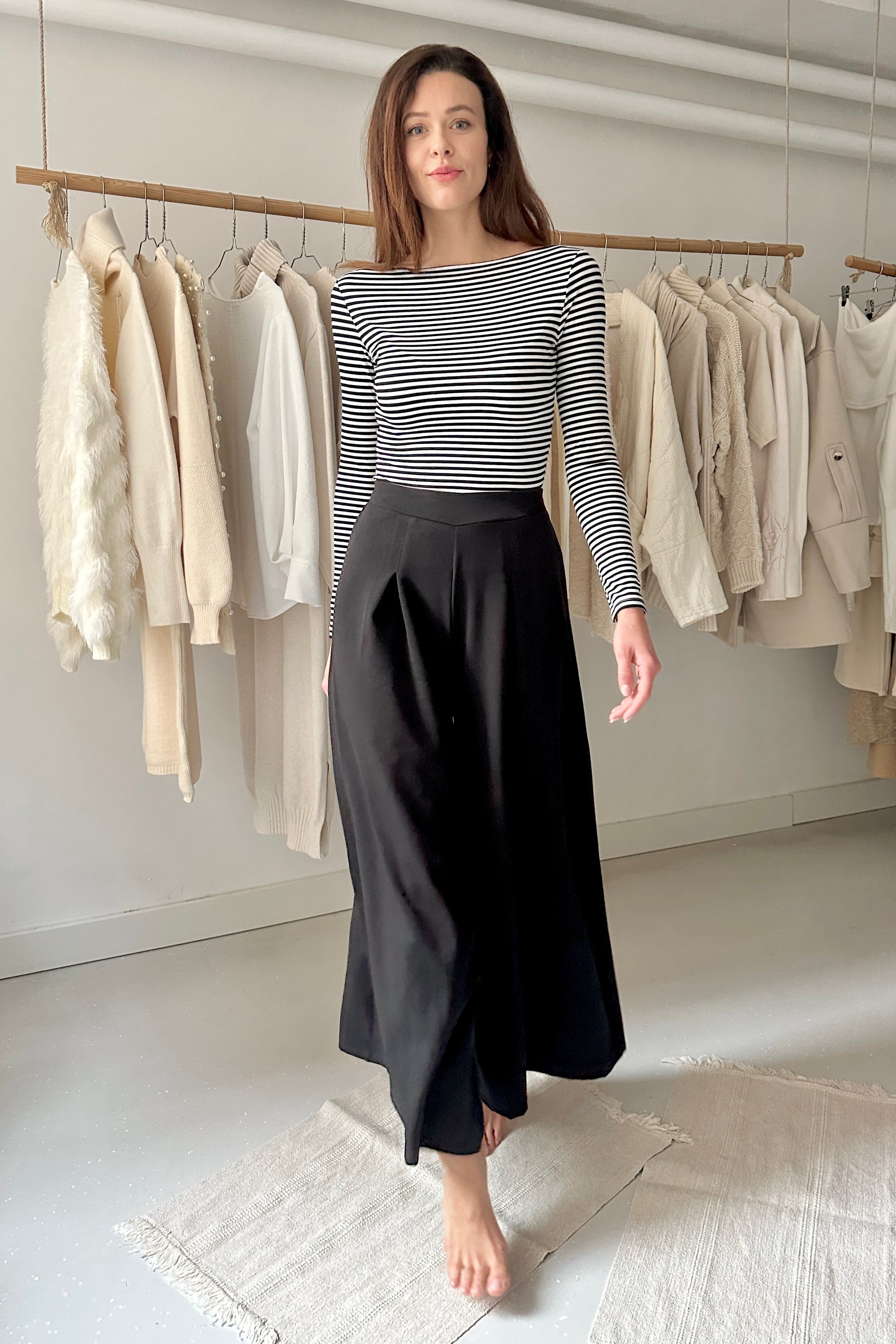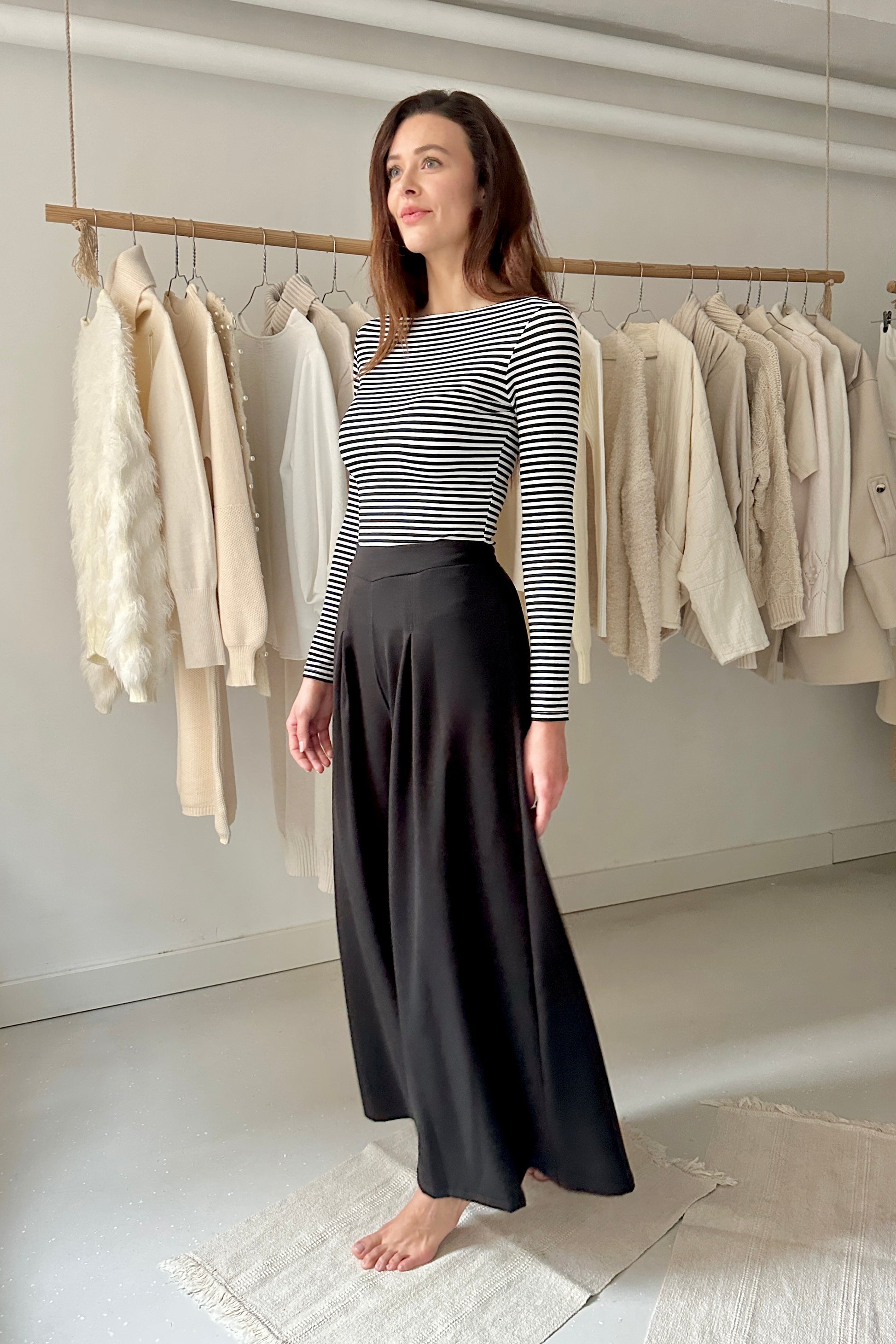 Anyaga: 94% viszkóz 6% elasztán - viszkóz jersey. Elasztikus, puha extra minőségű viszkóz. Egyenes vonalú nyakmegoldásával, hosszú ujjával, hosszú derékszabásával, igazi tavaszi/őszi/téli alapdarab. Gépben 30 fokon mosható. A modell 177 cm magas.