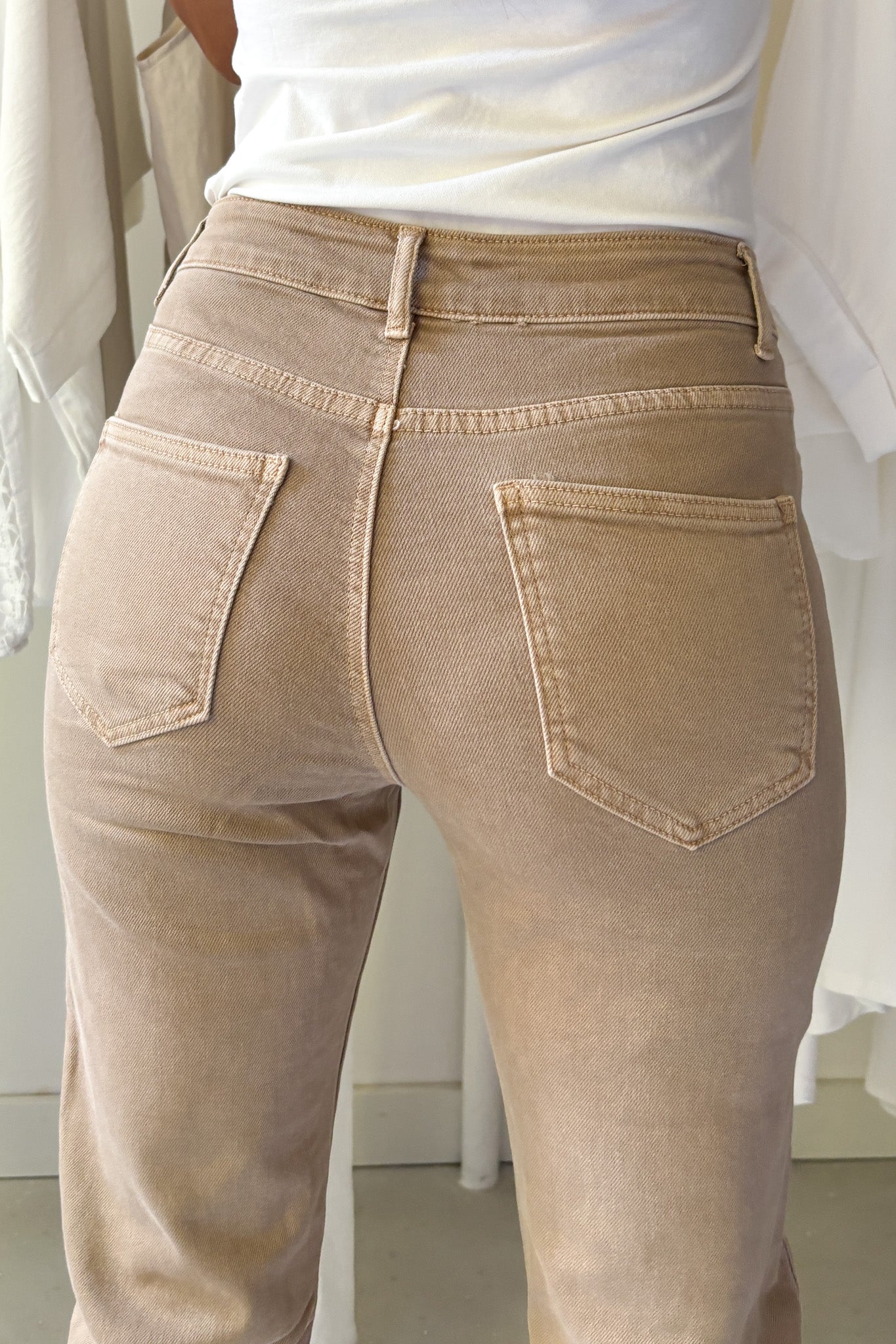 Bézs színű farmer. Elöl-hátul zsebekkel ellátott.