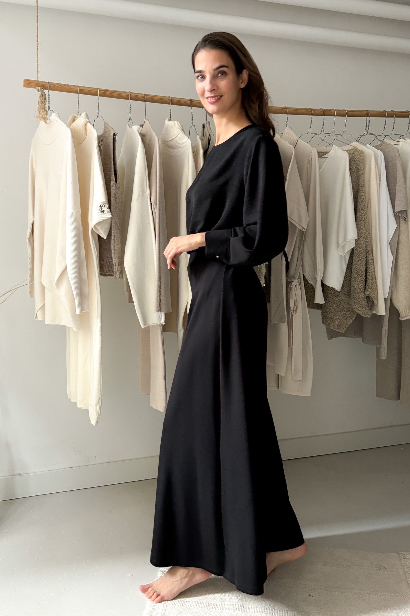 Vékony, lágy esésű anyag. Kerek nyakú, egyenes szabású blúz, melyet különleges ujjmegoldása tesz egészen egyedivé. Egyméretes, 34-38-es konfekcióméreteket fed le. Gépben 30 fokon mosható.