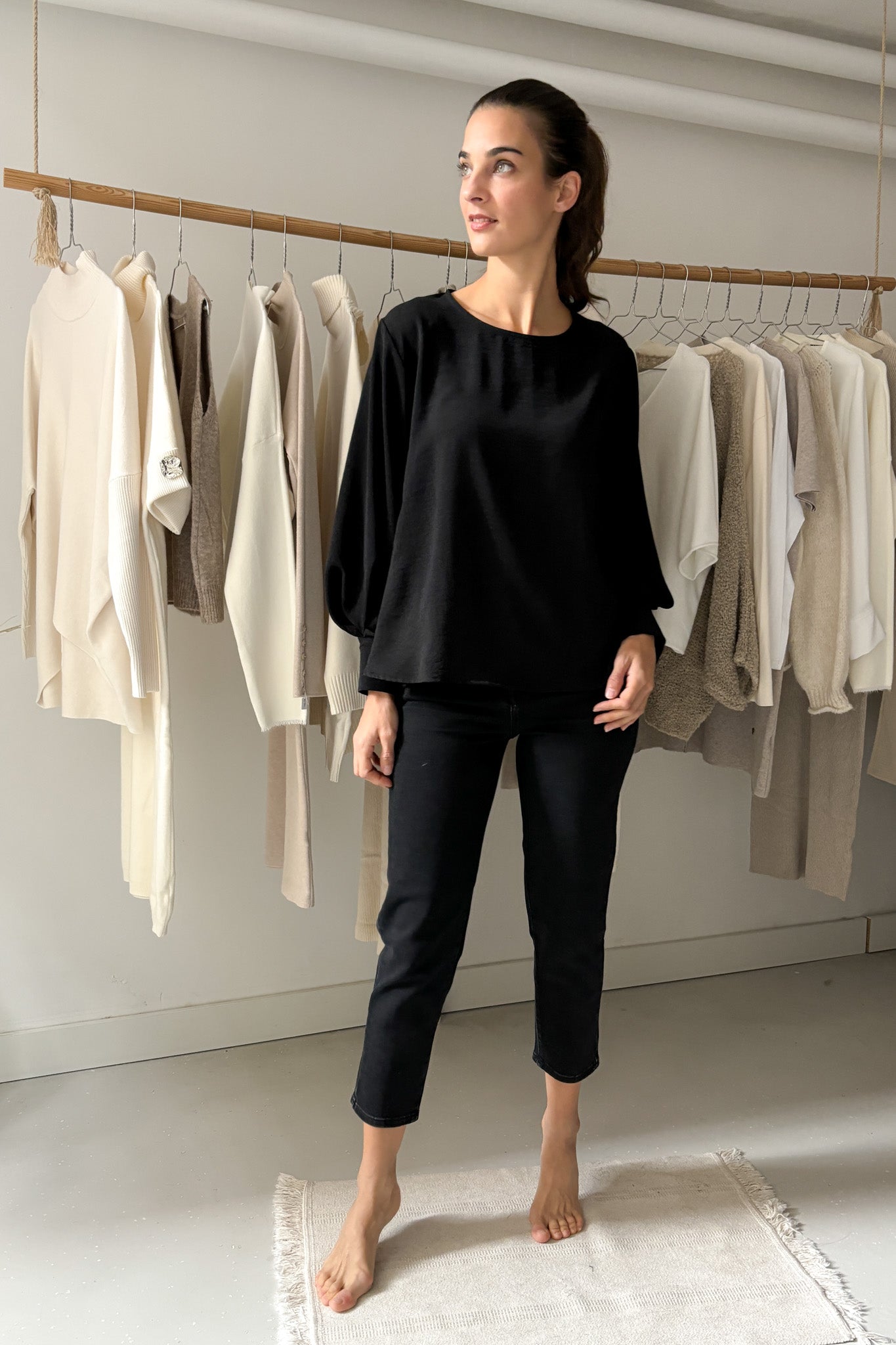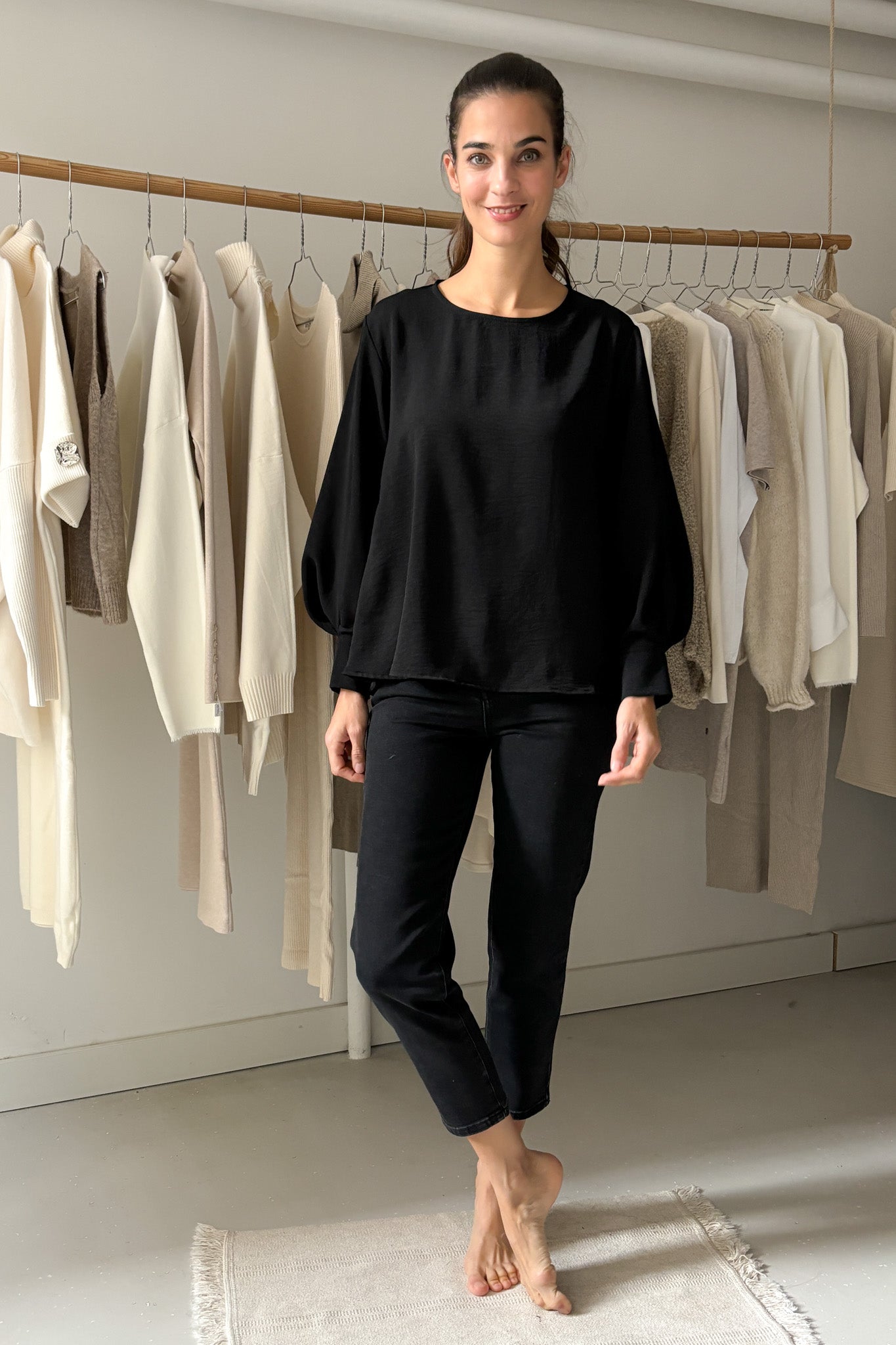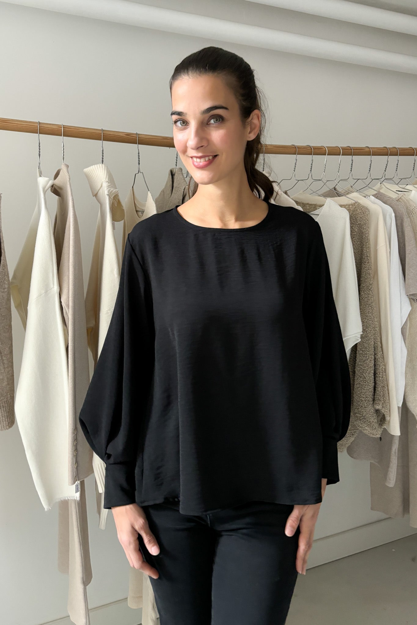Bő ujjszabású blúz - fekete
