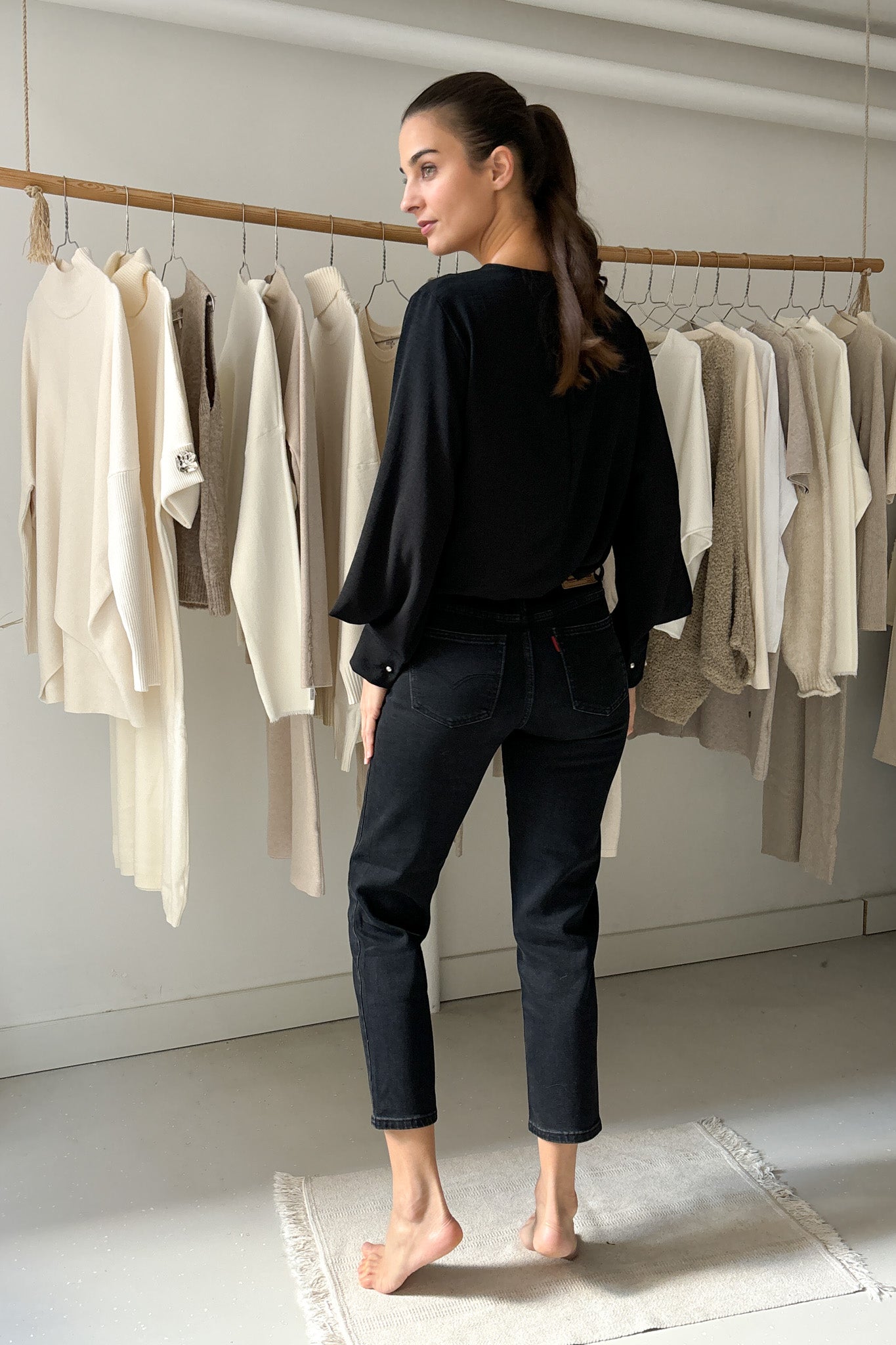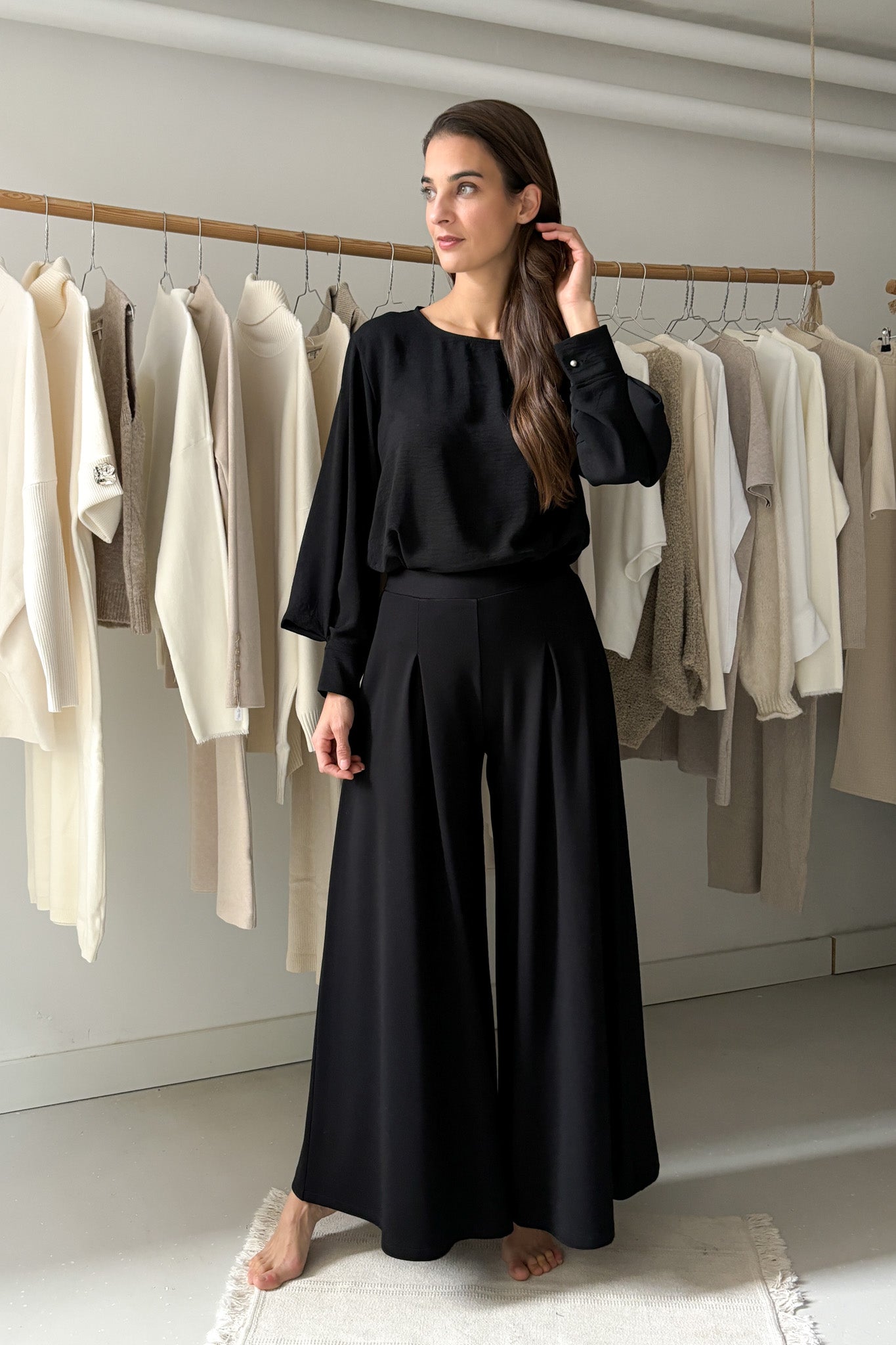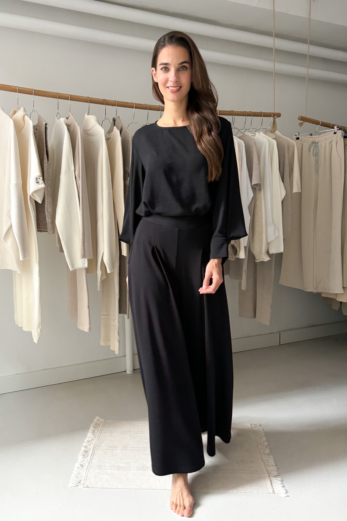 Bő ujjszabású blúz - fekete