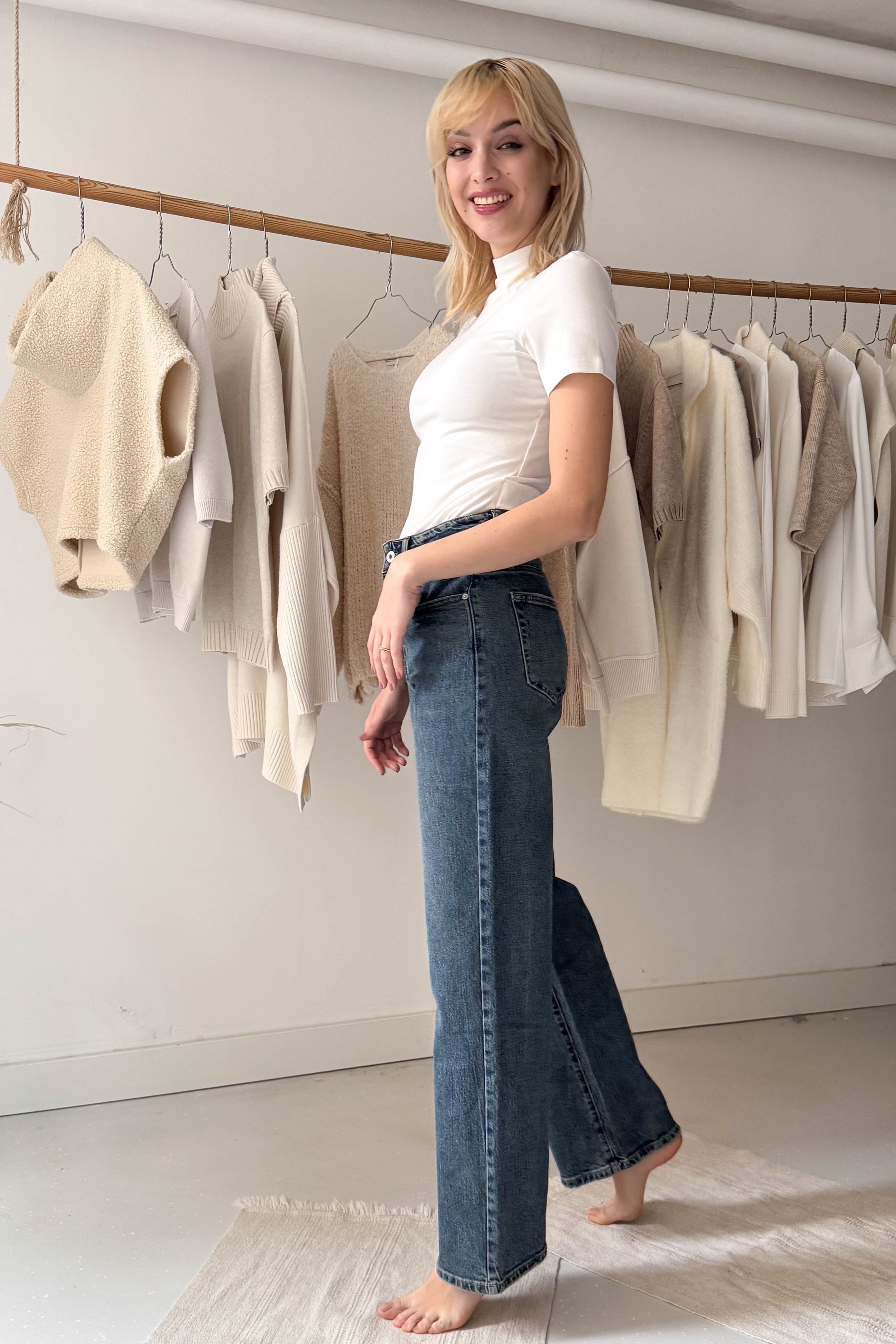 A modell 174 cm magas, a nadrág pedig S méret.