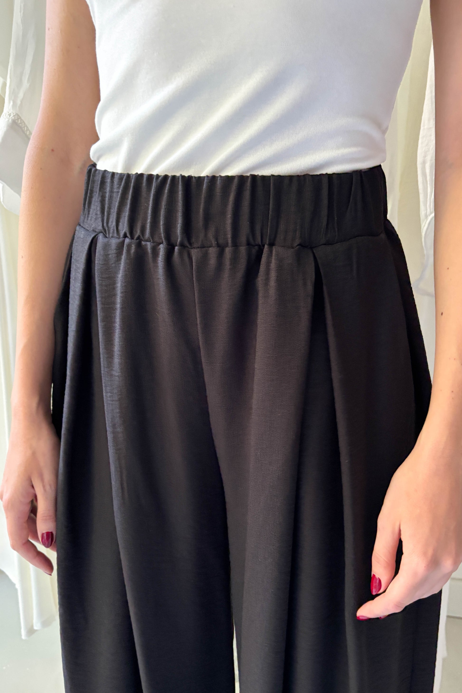 Elöl hajtásos lenge nadrág-fekete