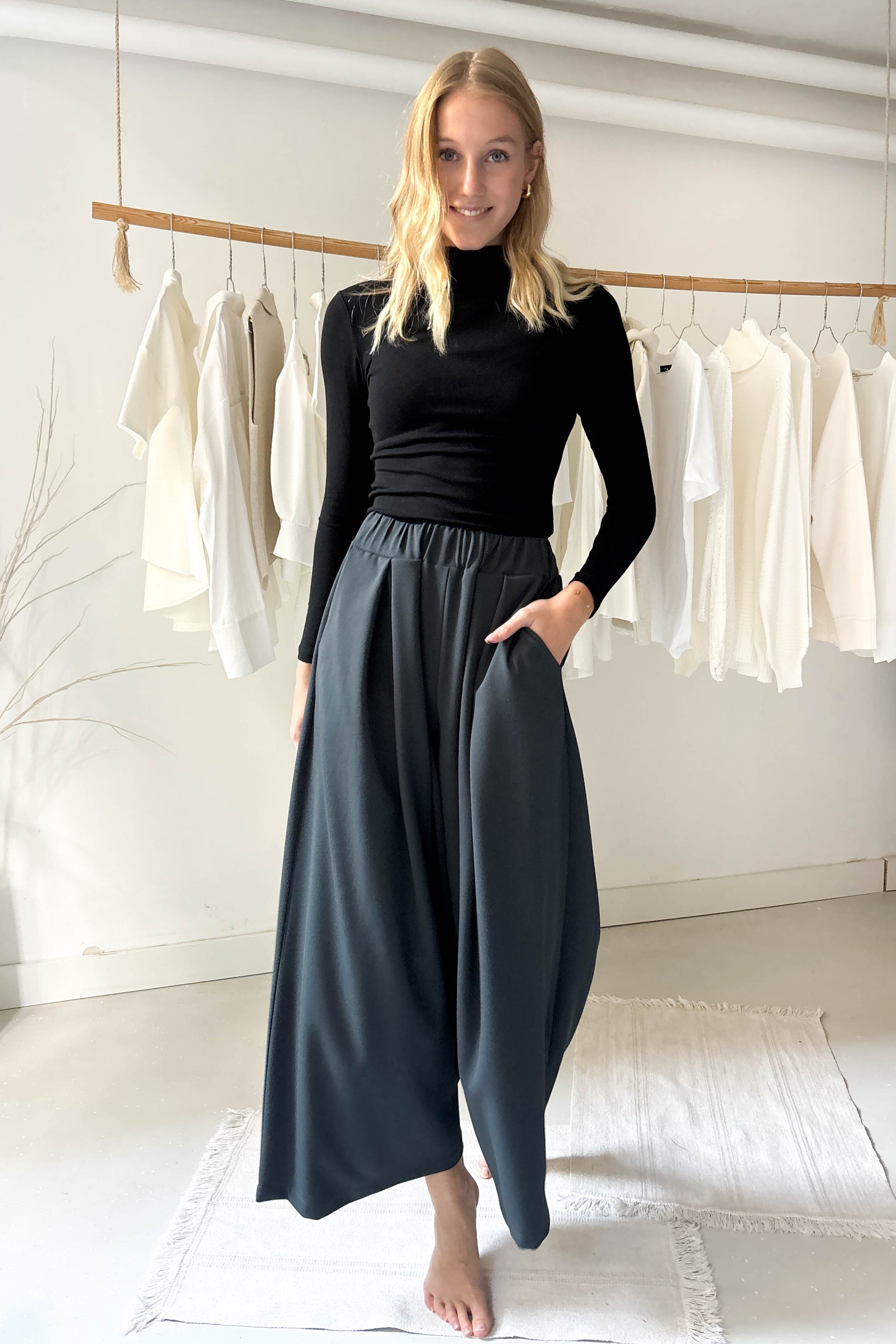 A modell 176 cm magas, a nadrág pedig egyméretes. S-M méretre javasoljuk.