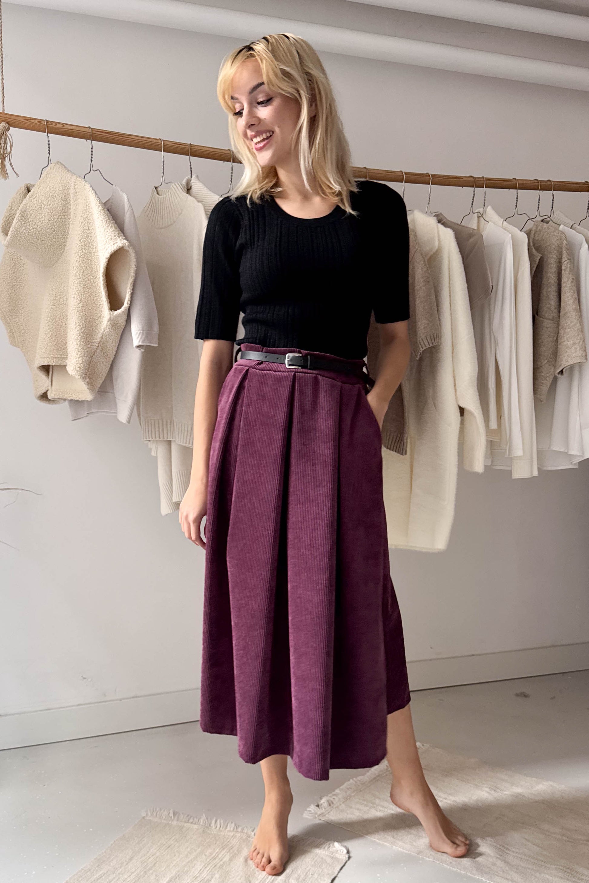 A modell 174 cm magas, a felső pedig S/M méret.