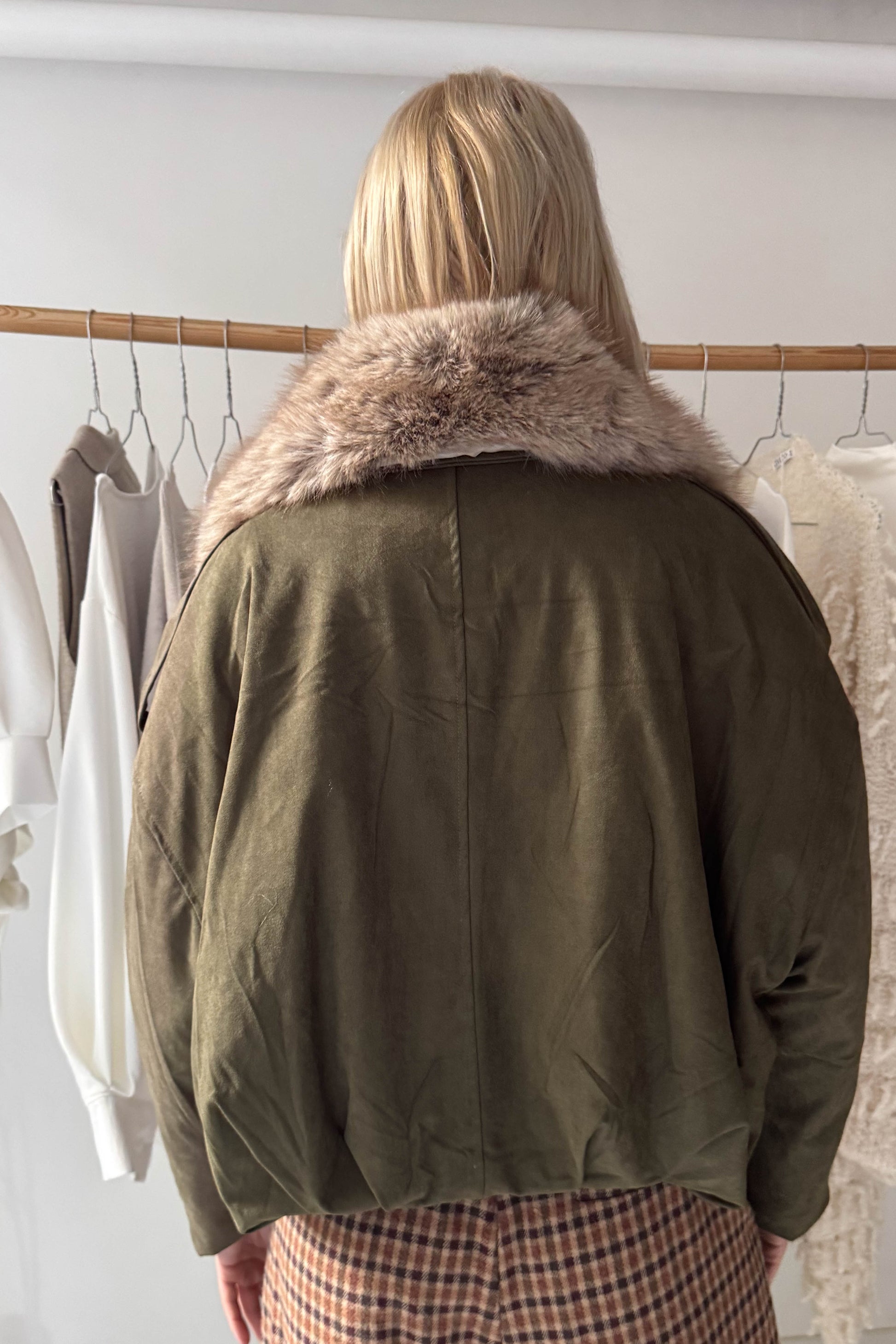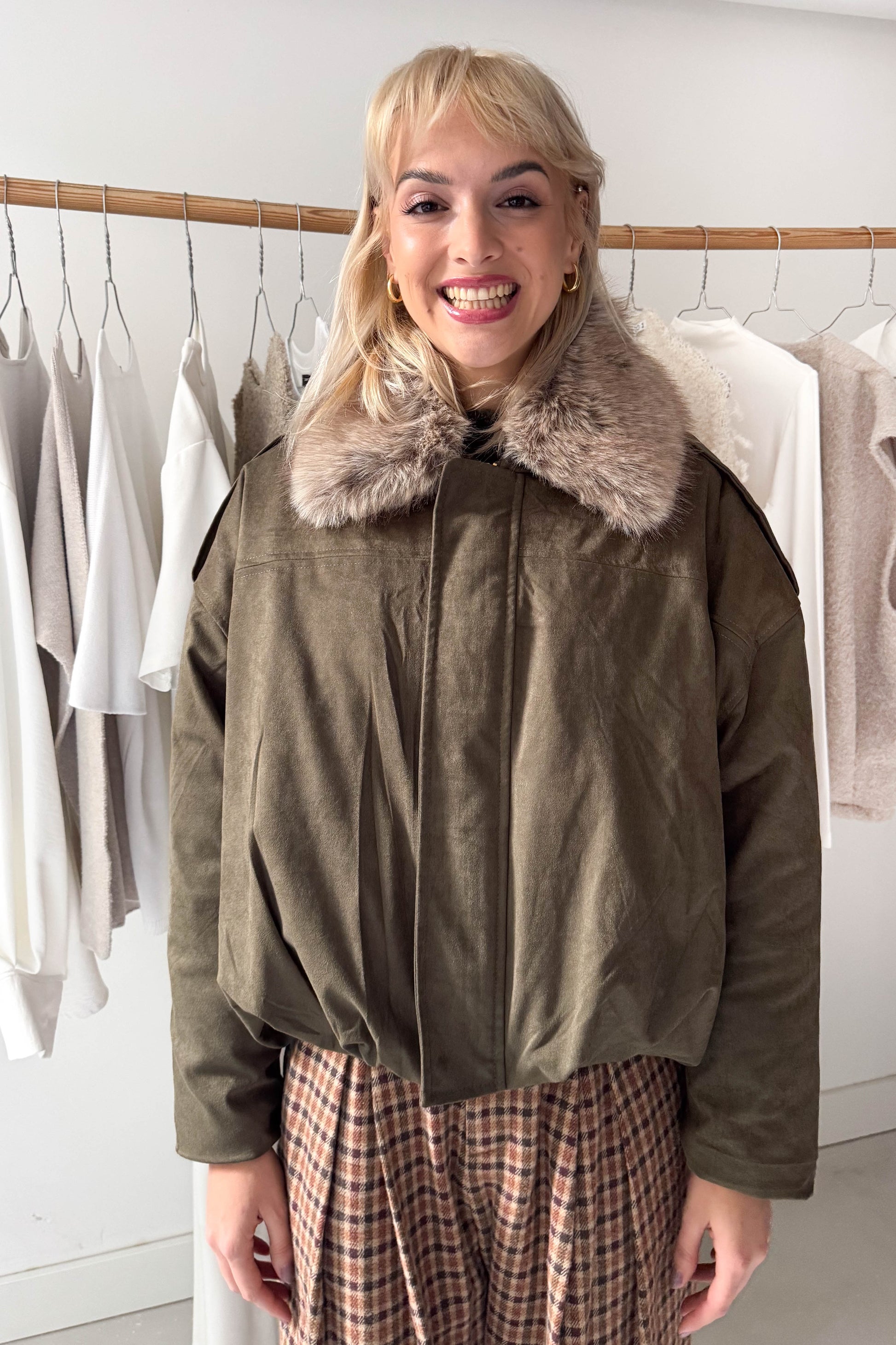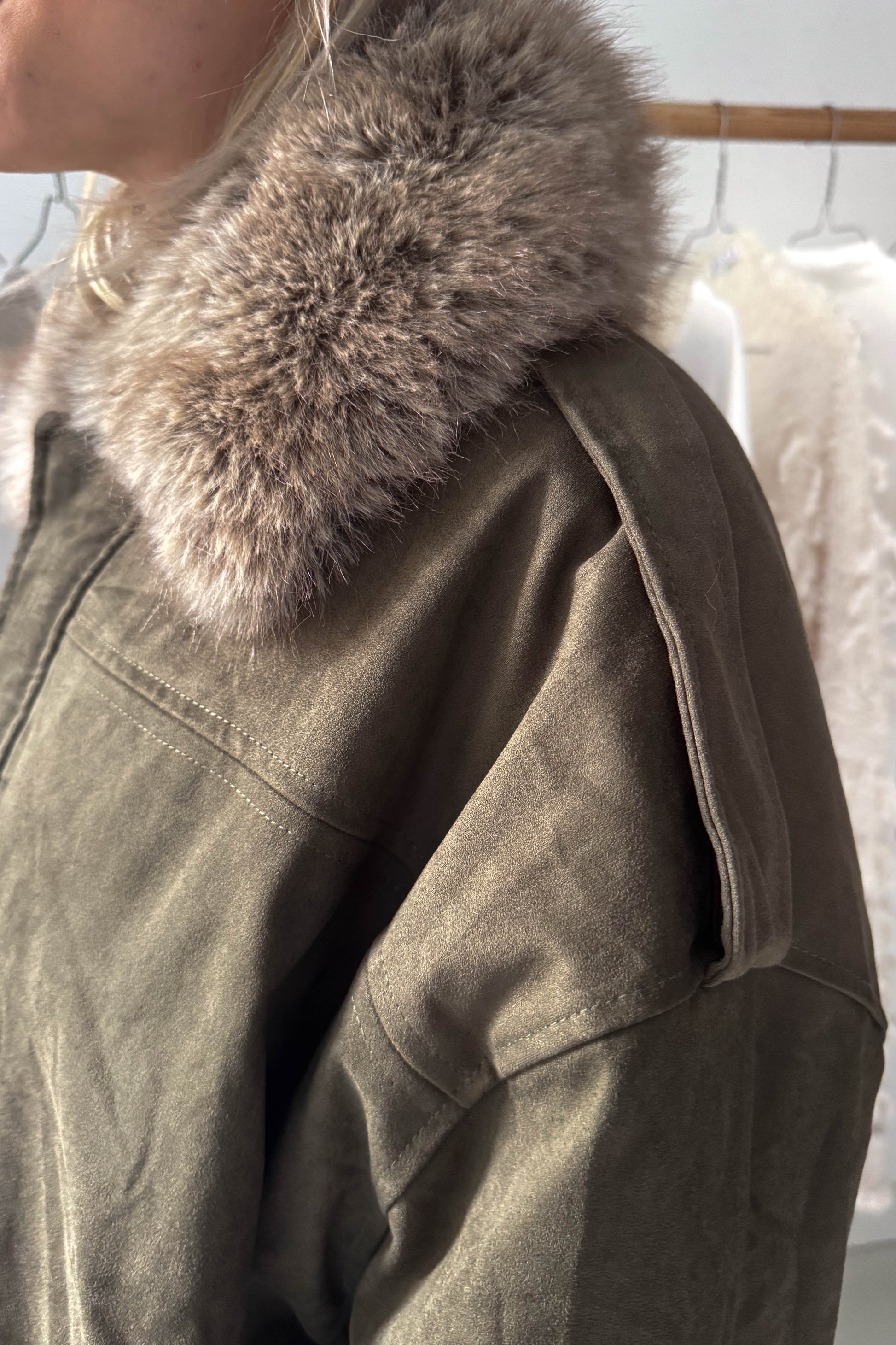 Levehető szőrös galléros művelúr bomberdzseki-khaki