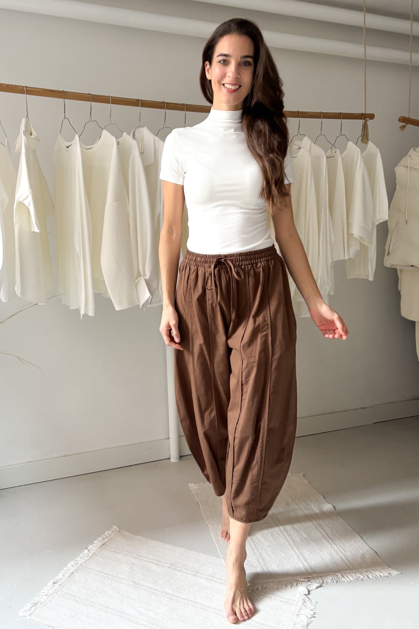 A modell 177 cm magas, a póló pedig egyméretes.