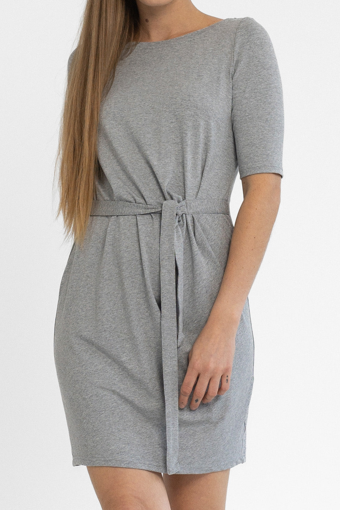 92% viszkóz, 8% elasztán, kényelmes, puha anyagú, tavaszi/nyári ruha. A méret 34-38-as konfekcióméreteket fed le. Gépben 30 fokon mosható. A modell 174 cm magas.