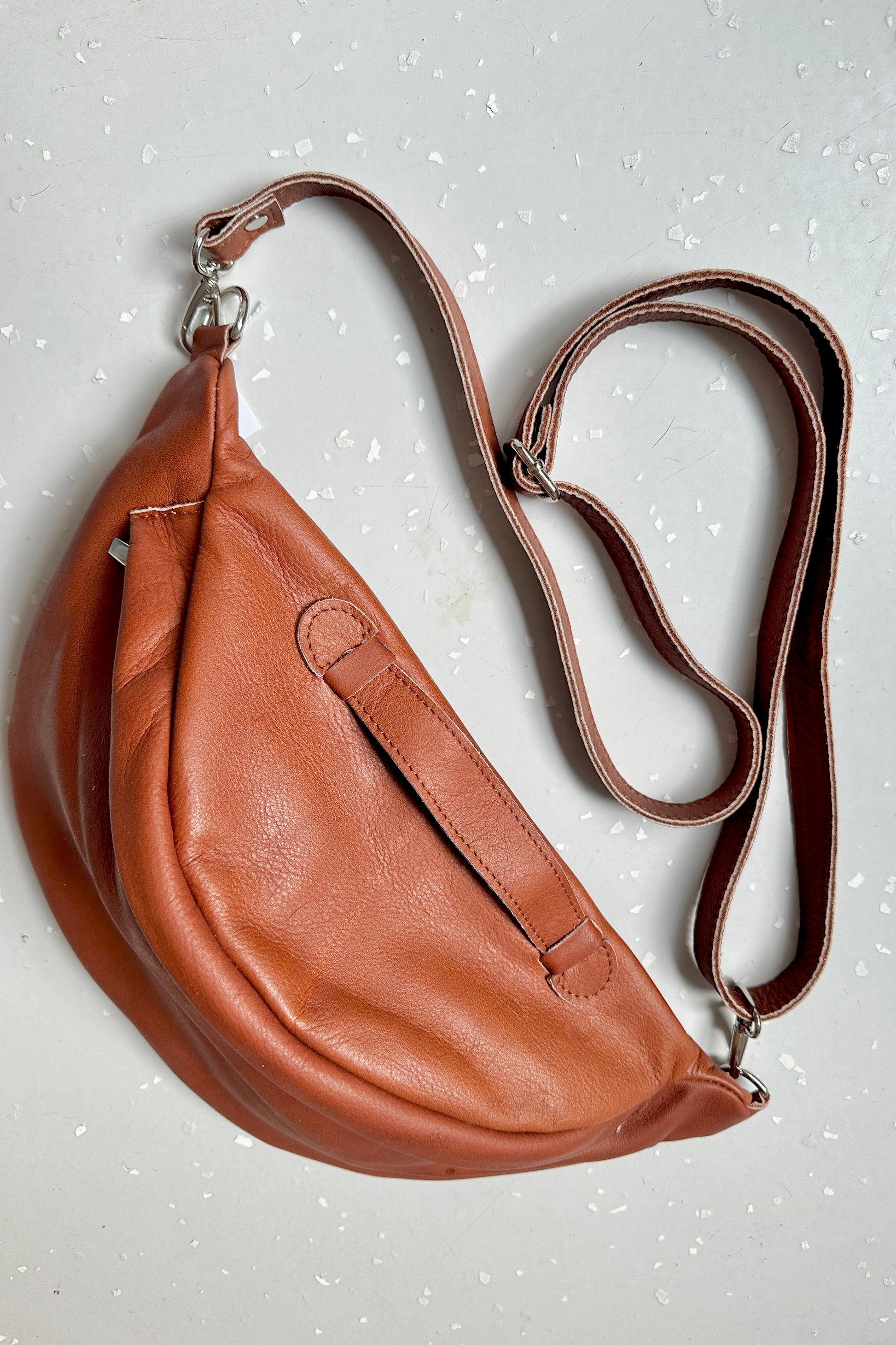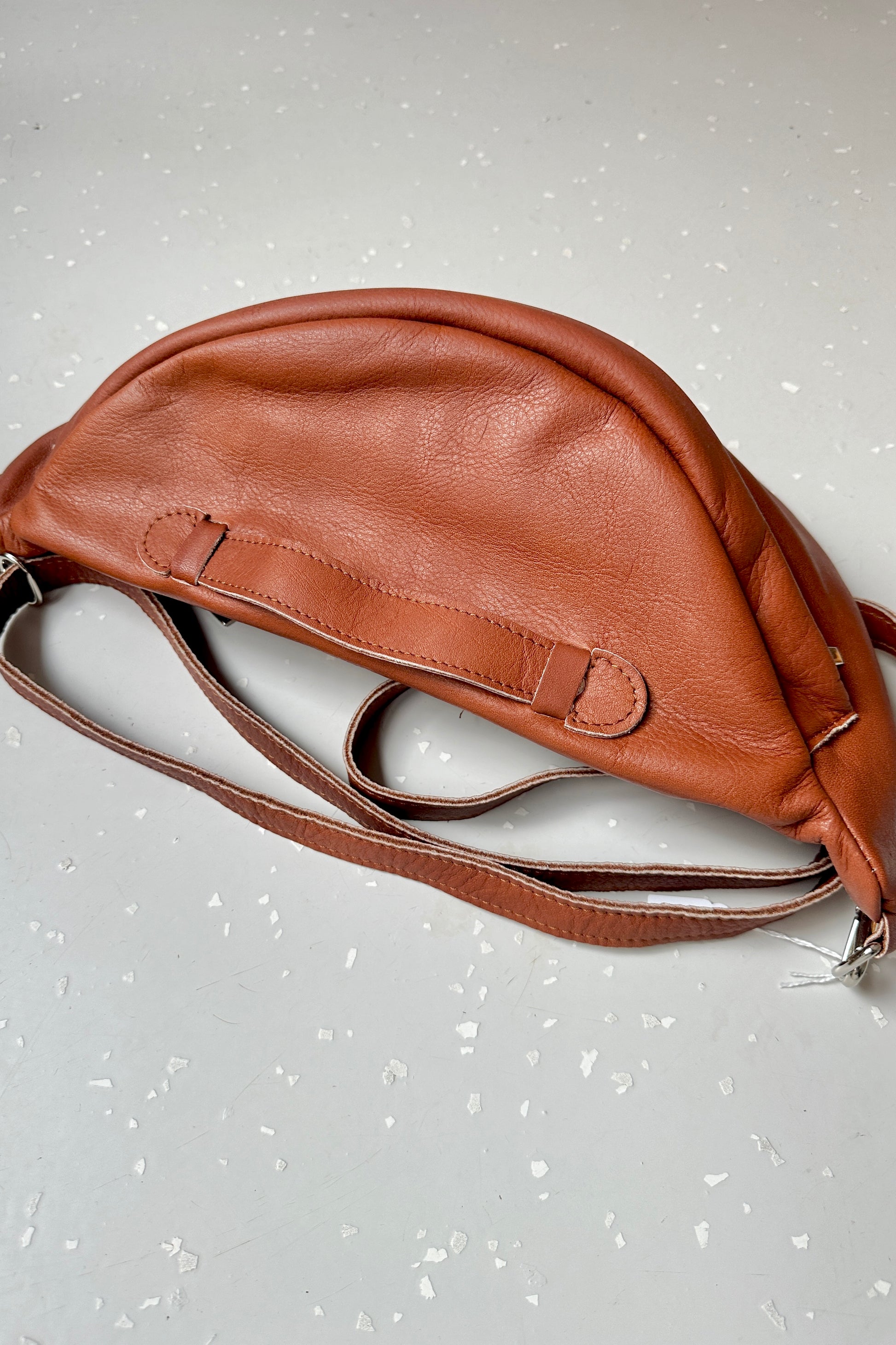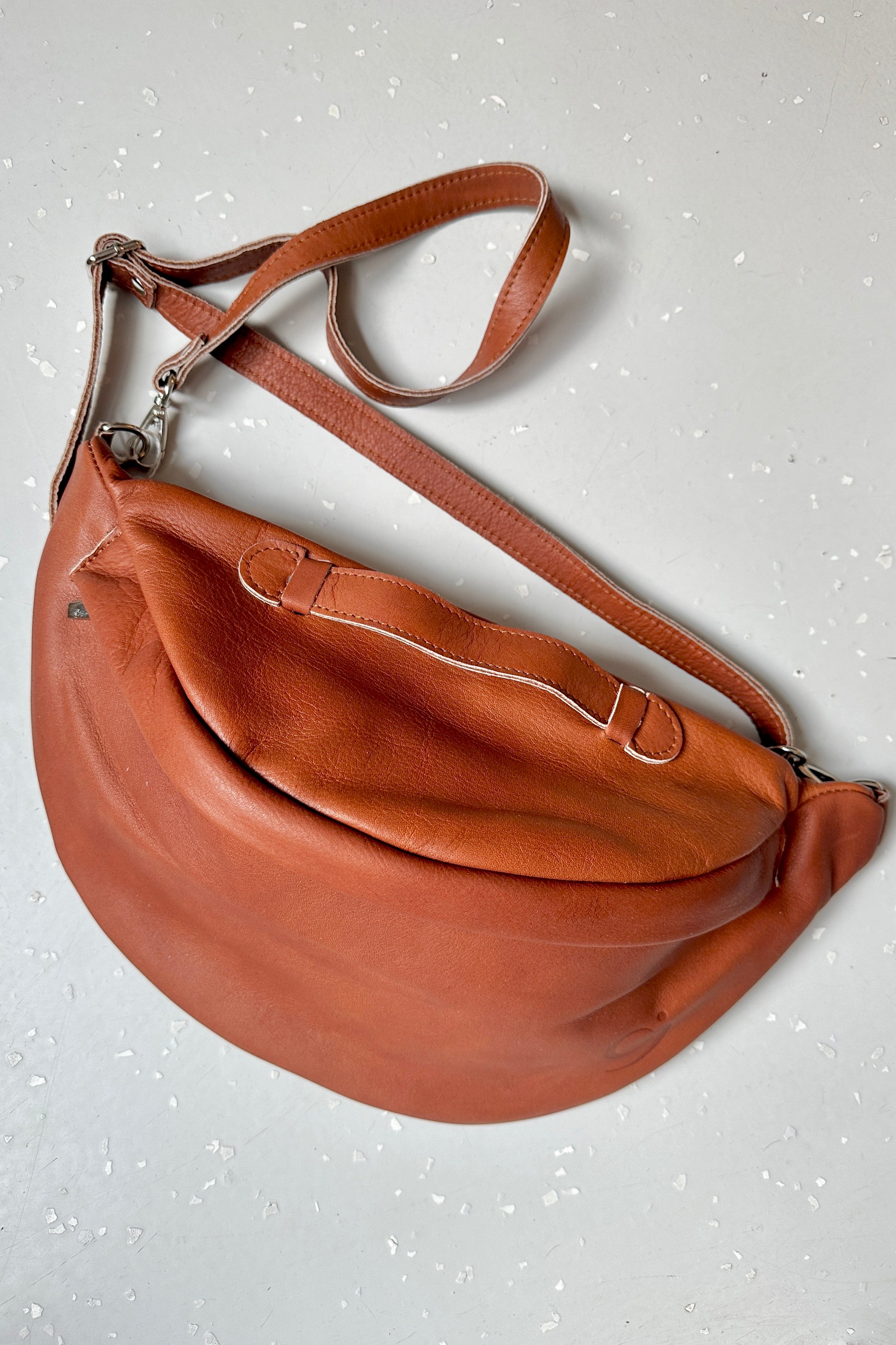 Nagy méretű, kézzel készített övtáska marhabőrből.