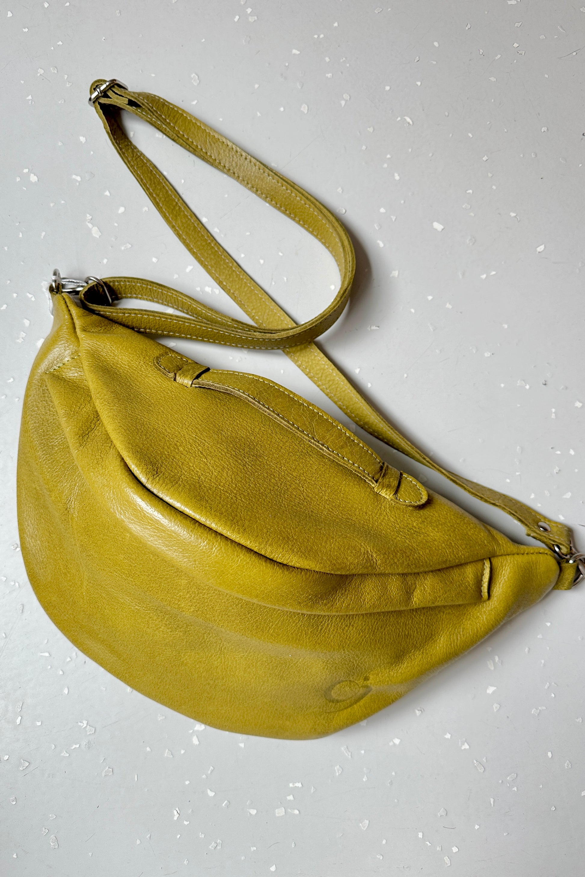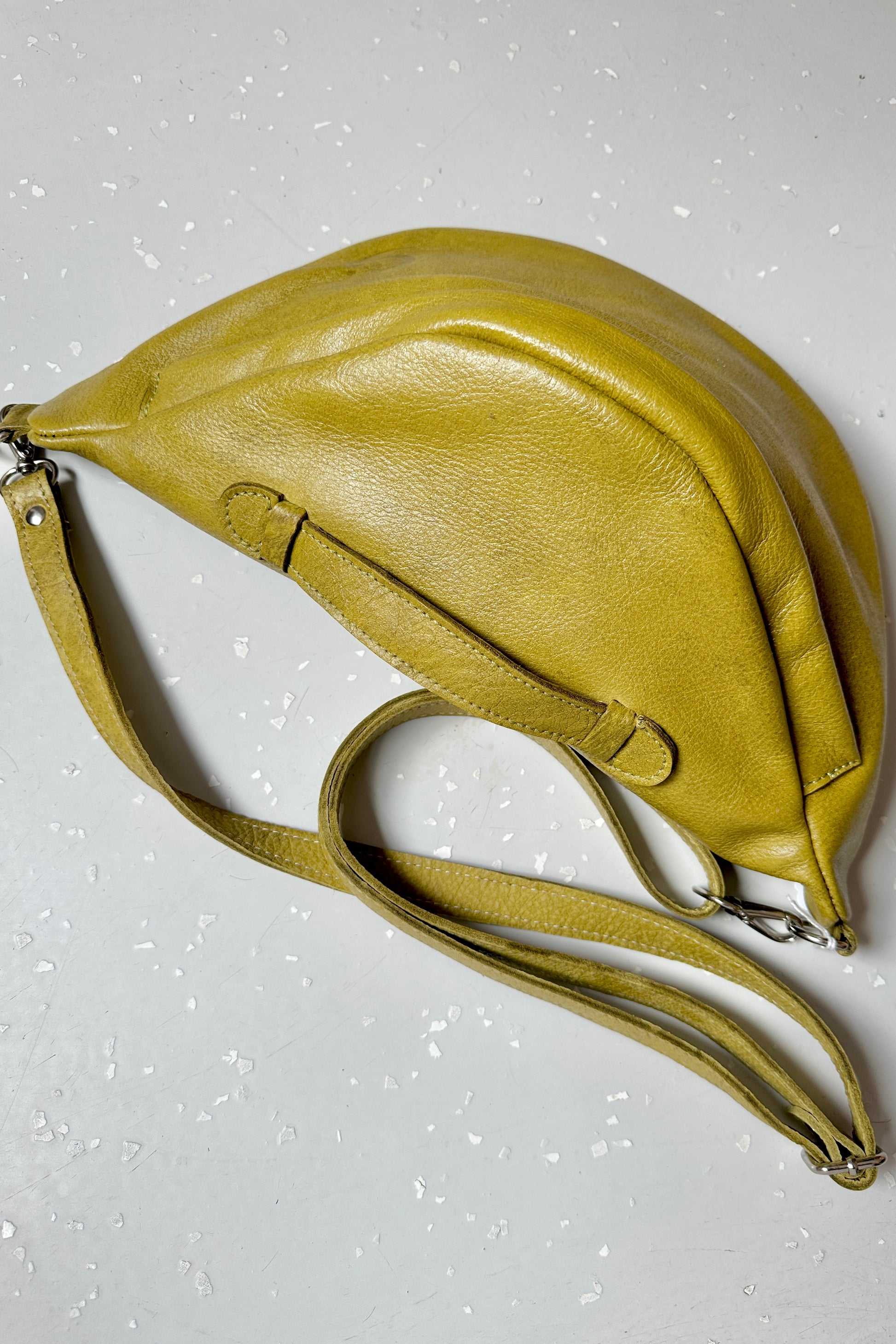 Nagy méretű, kézzel készített övtáska marhabőrből.