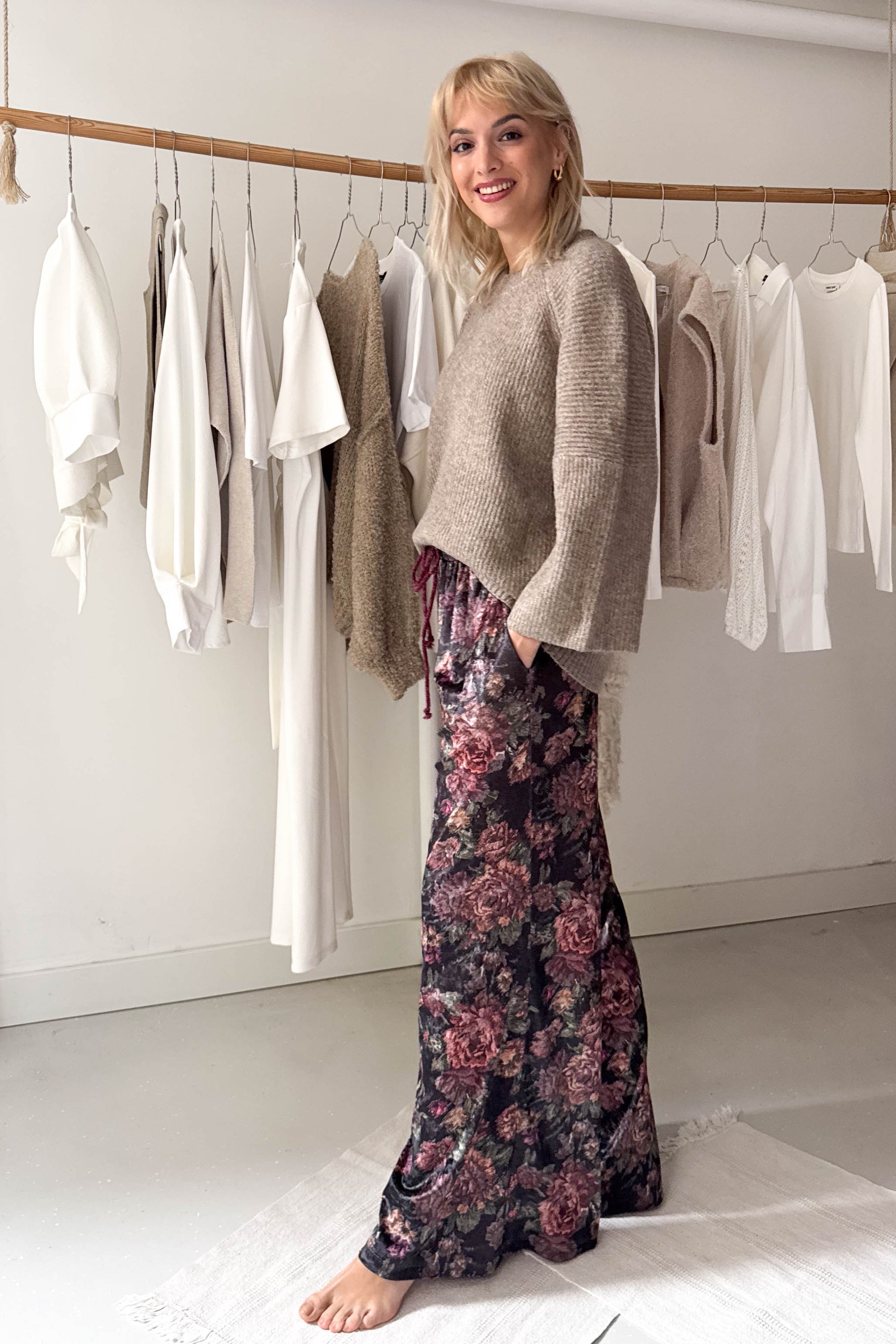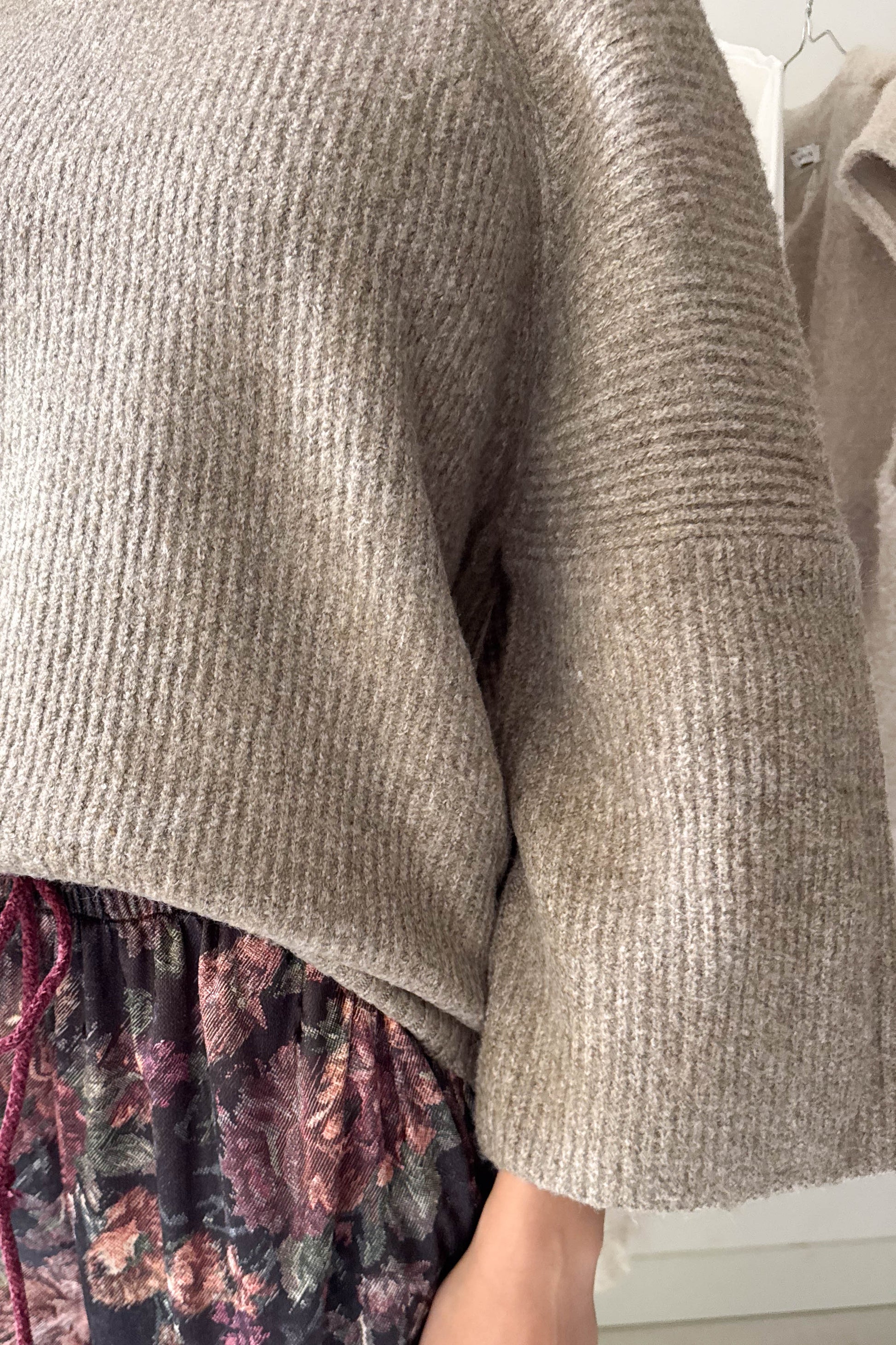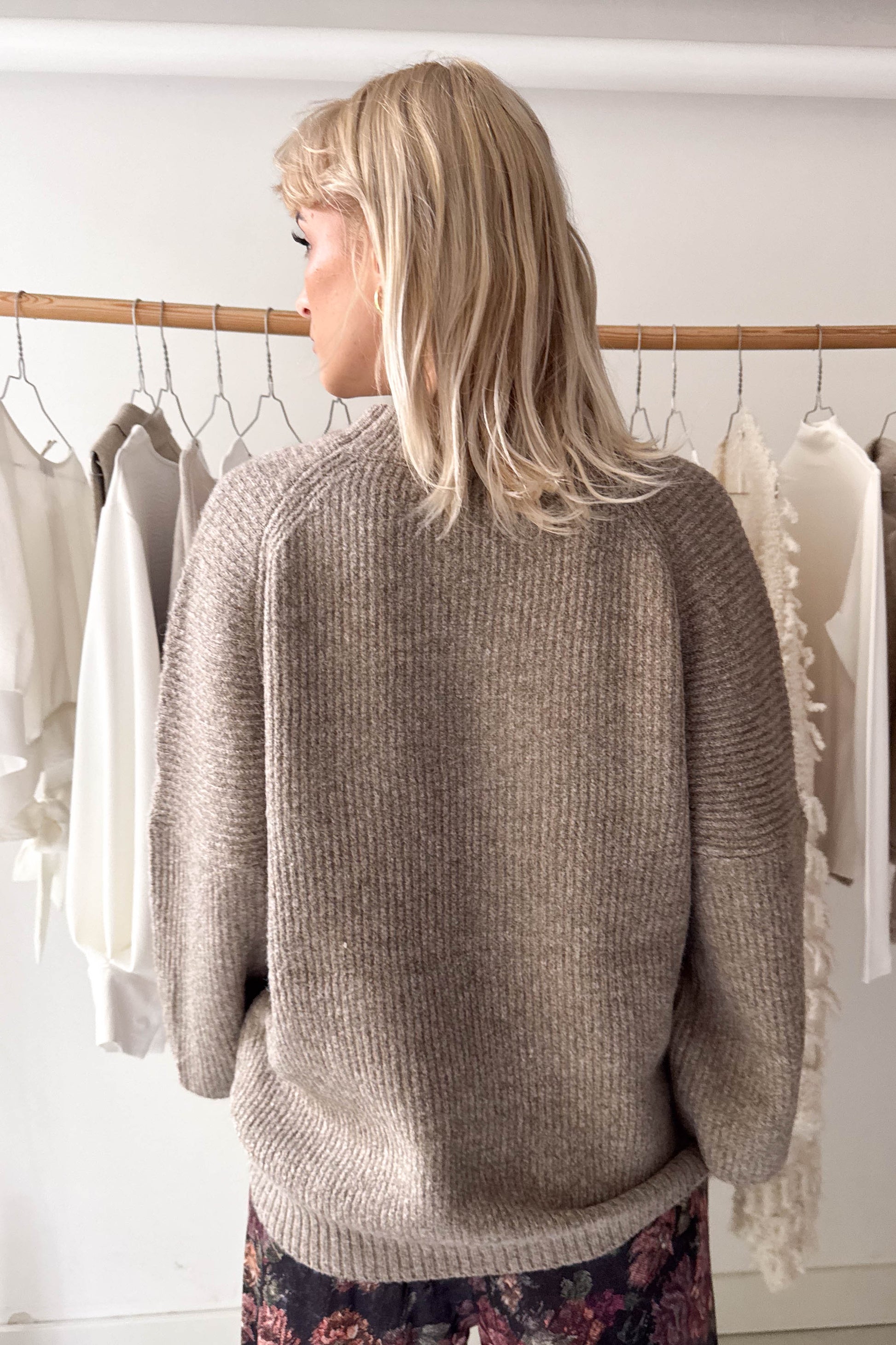 Oversize széles ujjú kötött pulcsi-makadámdiószín
