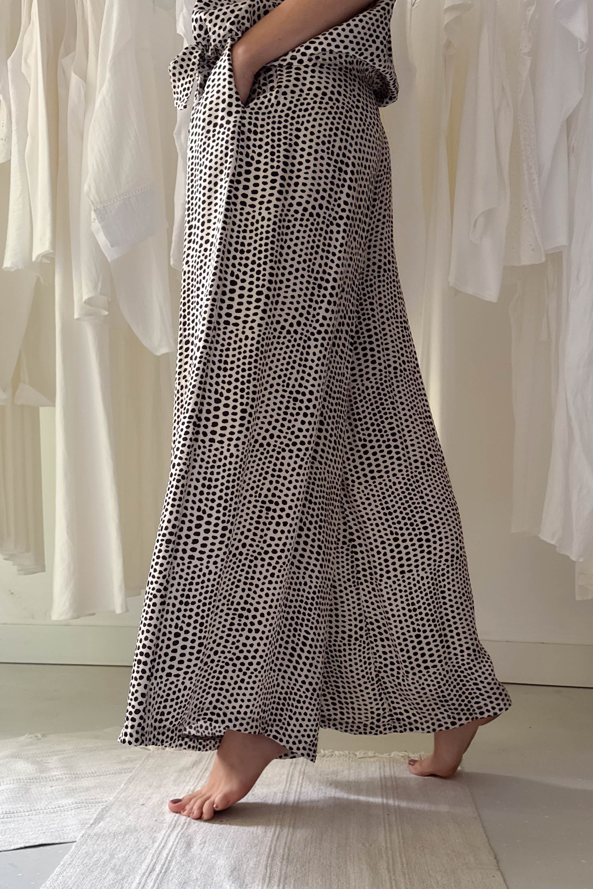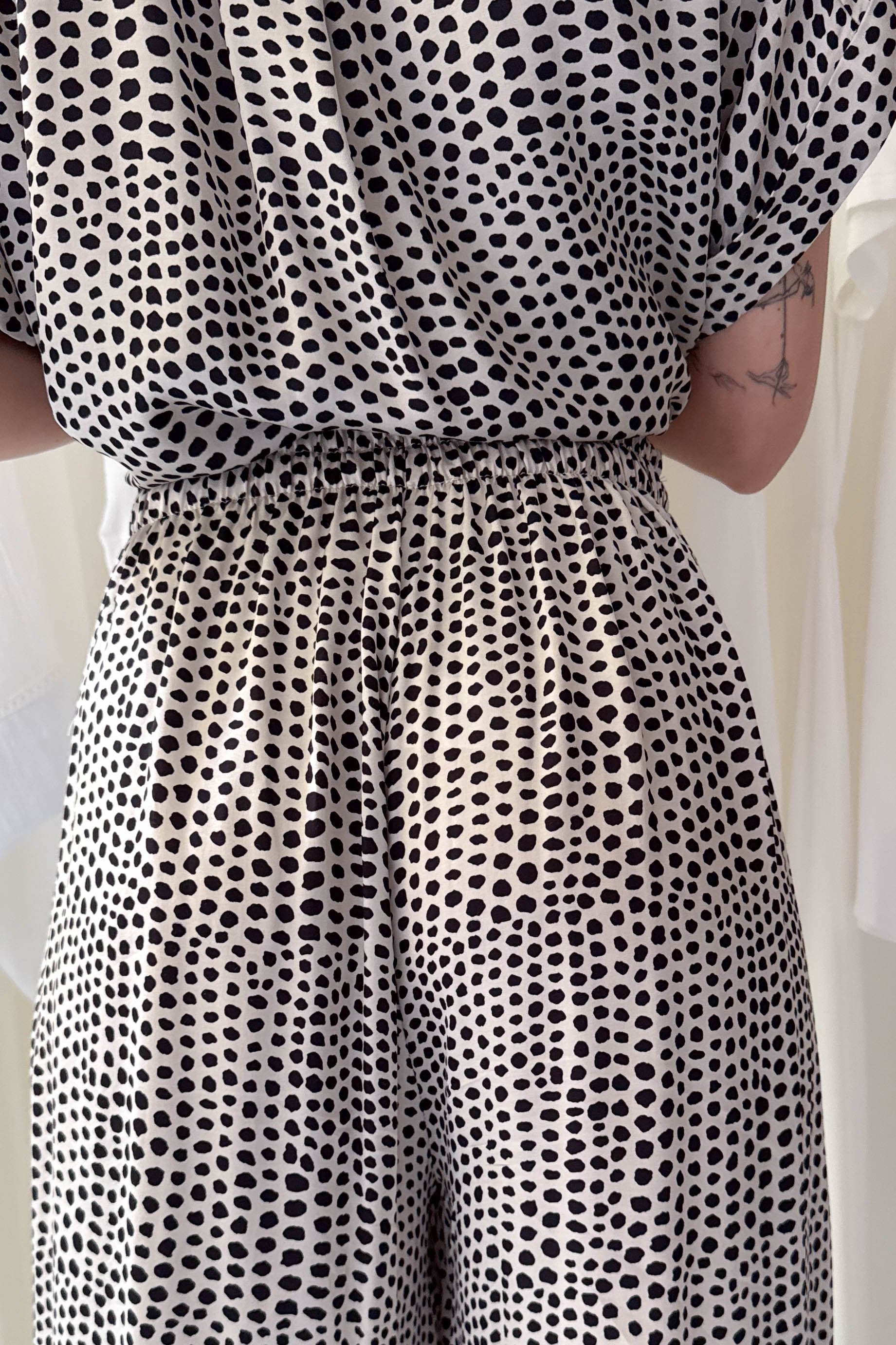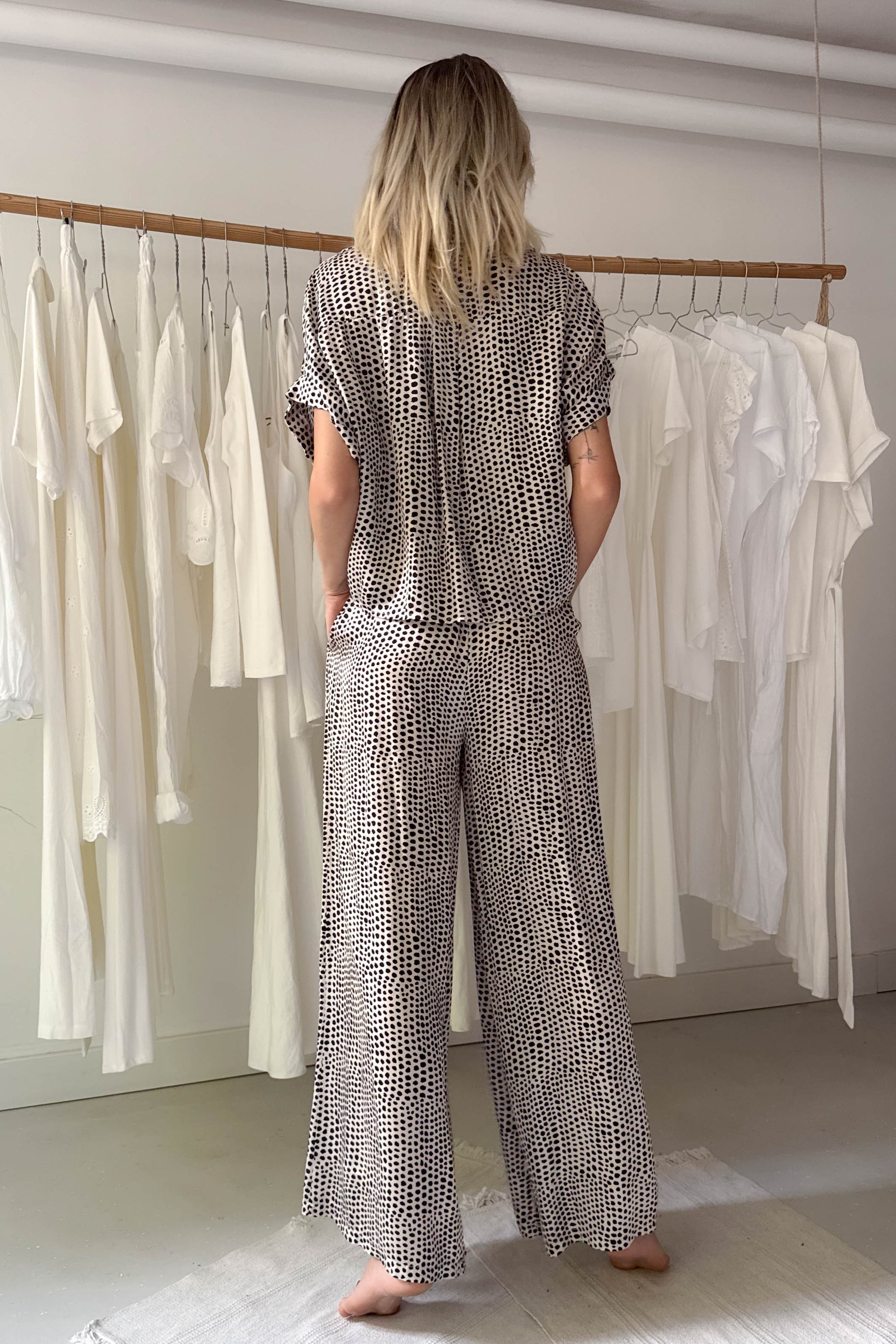 Gumírozott derekú, enyhén bővülő fazonú nadrág. Megkötős fazon.