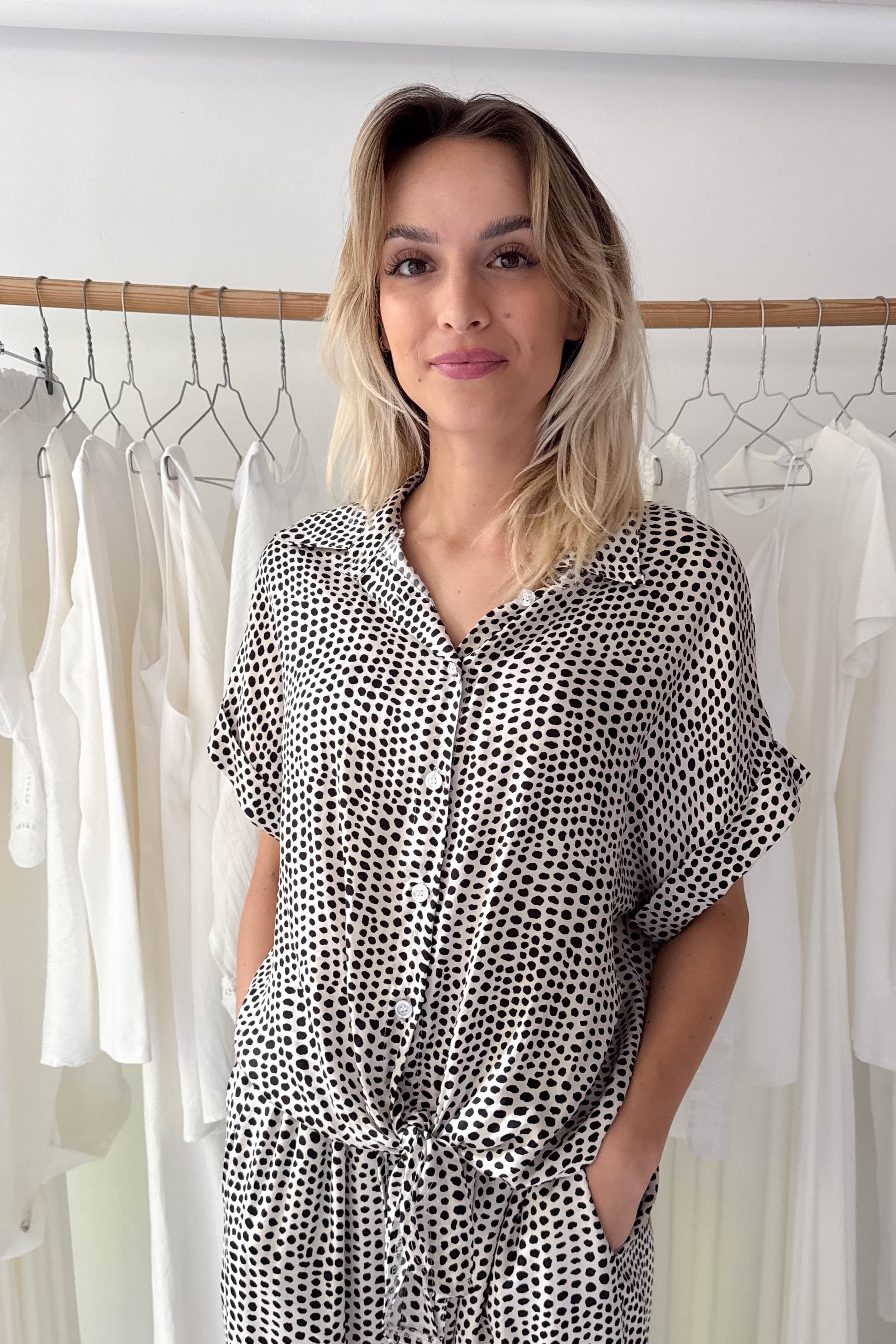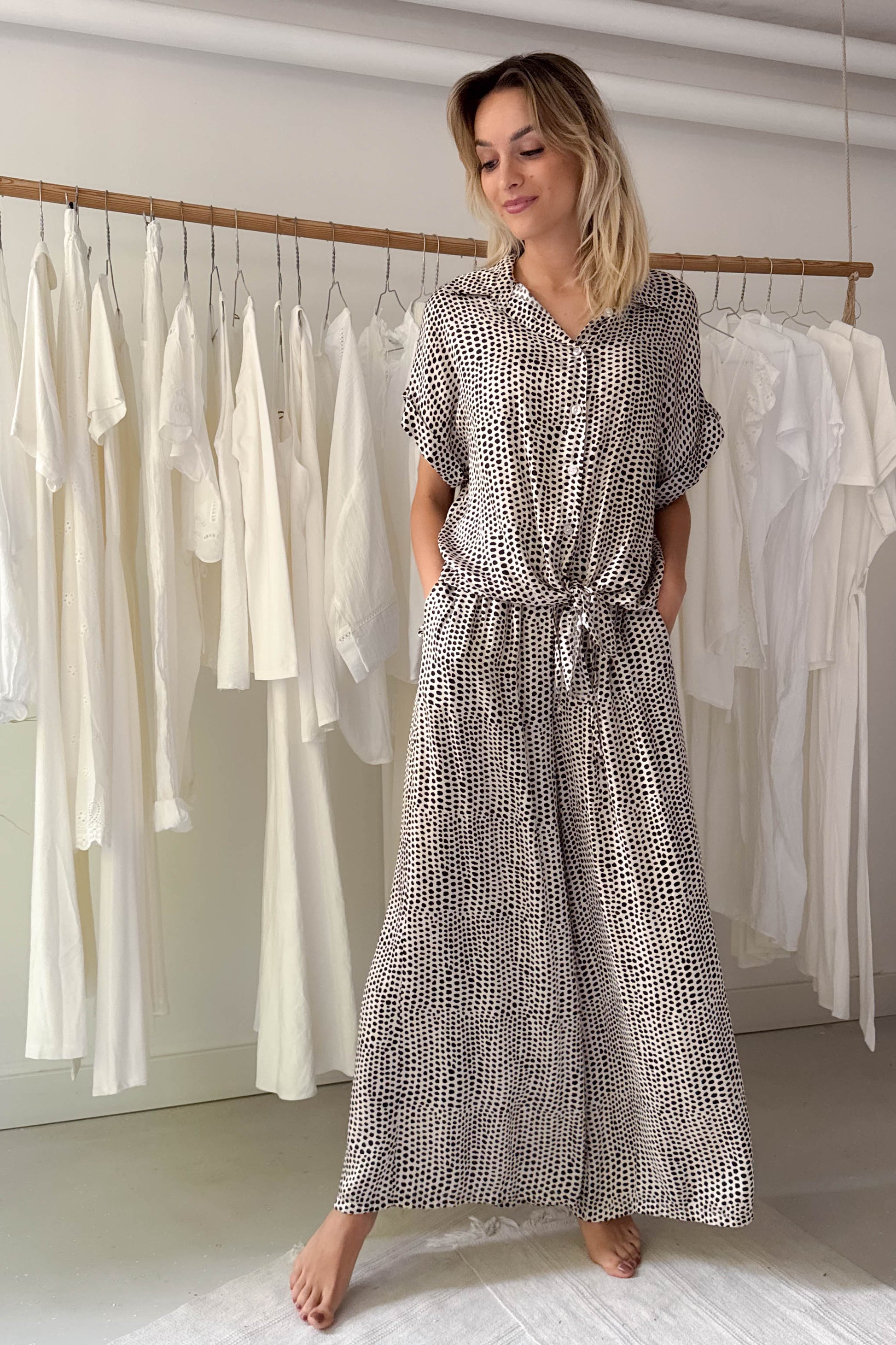 Galléros, rövidujjú, alul megkötős ing. Középen apró gombokkal záródik.