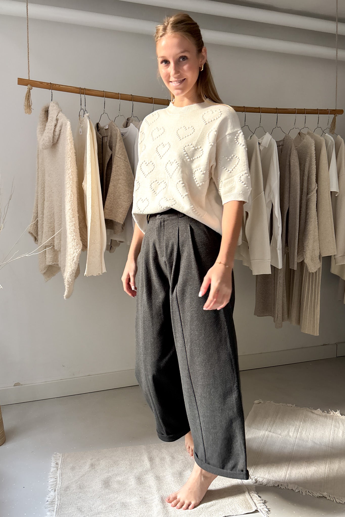A modell 176 cm magas, a felső pedig egyméretes.