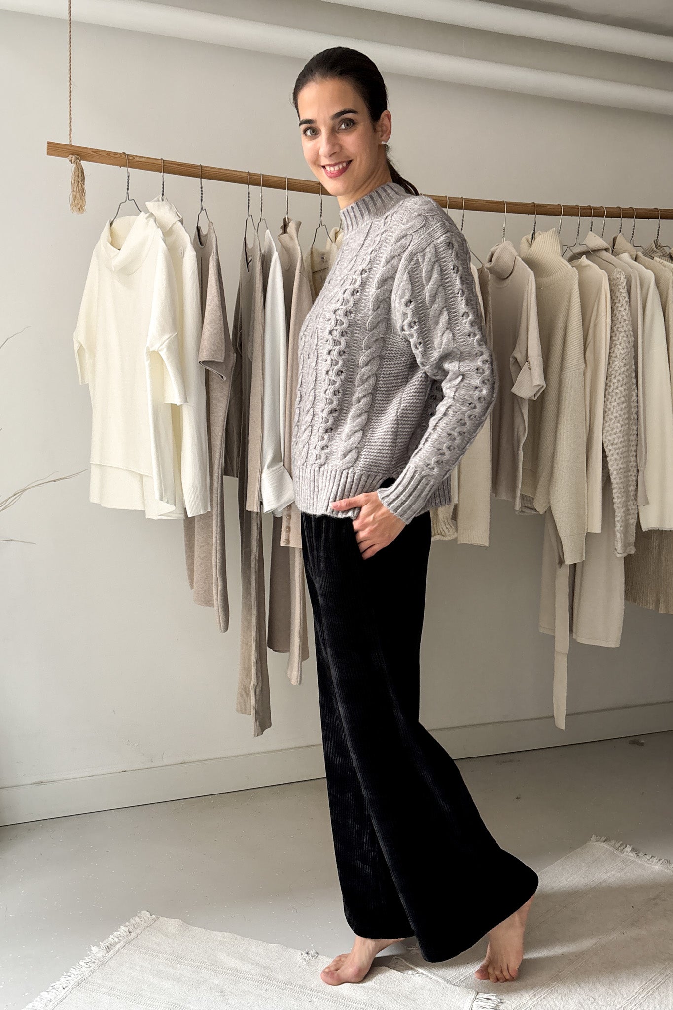 Szürke kötött pulóver