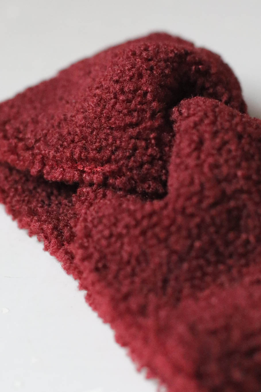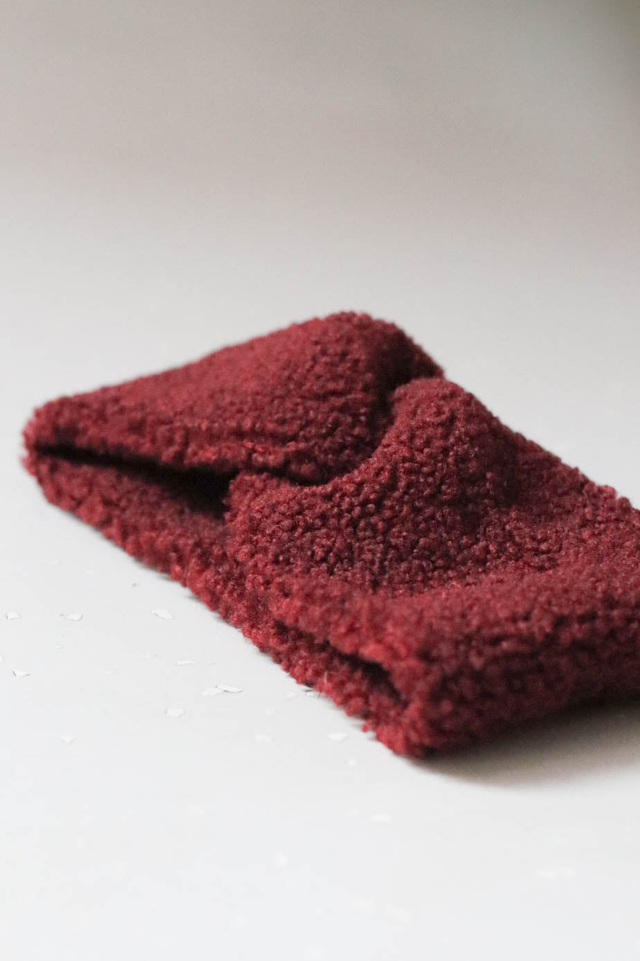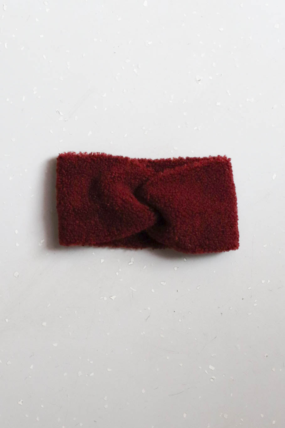 Teddy fejpánt, elöl átlapolással, burgundi vörös színben. 11 cm széles.