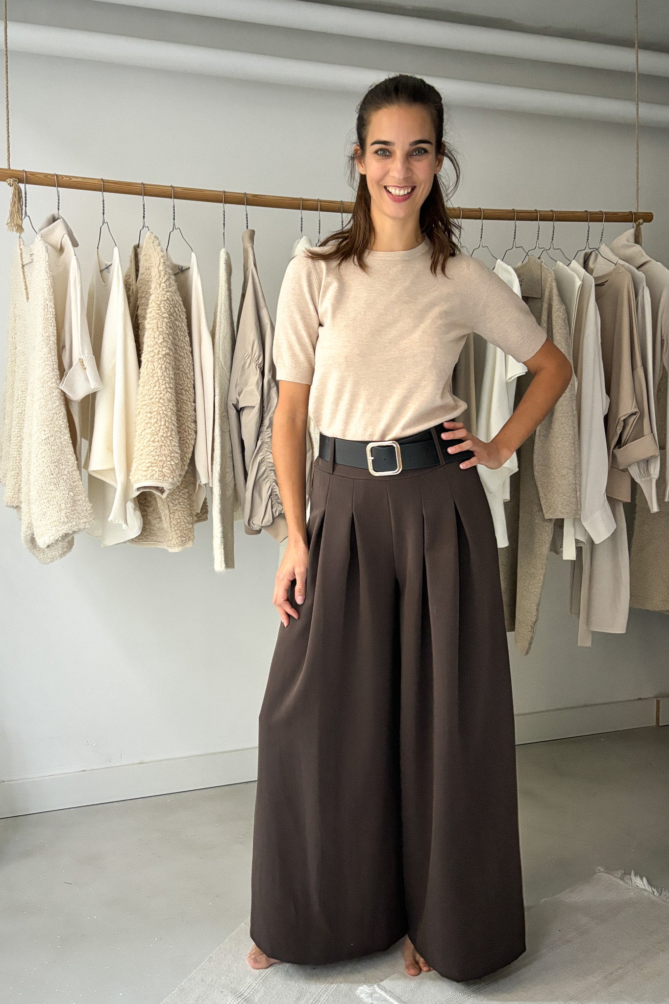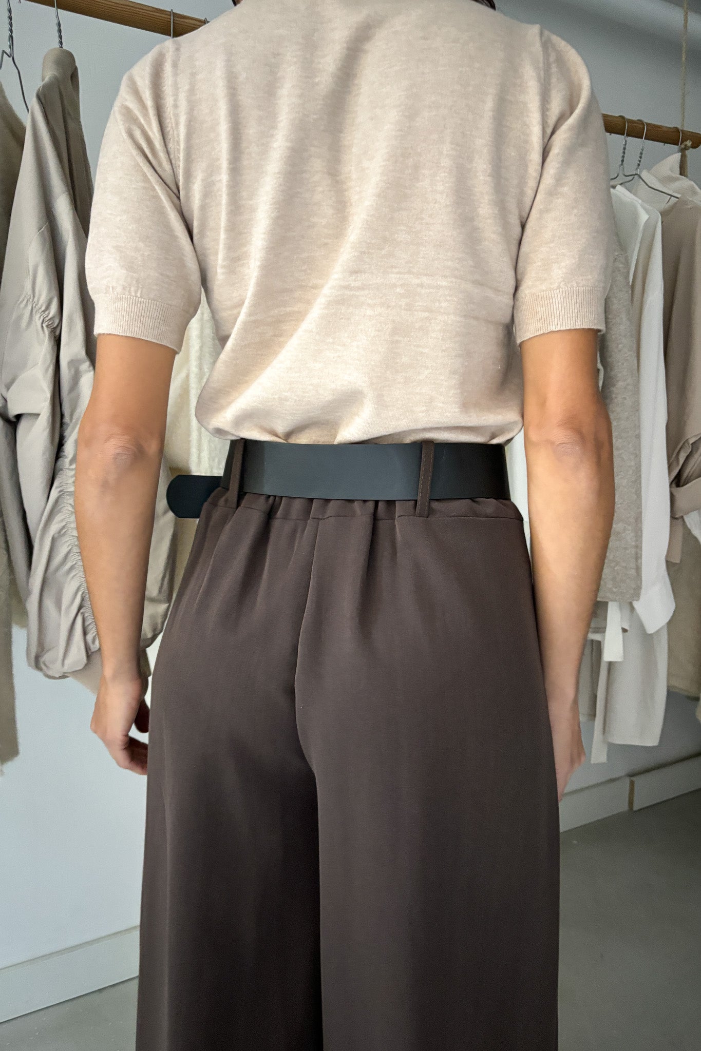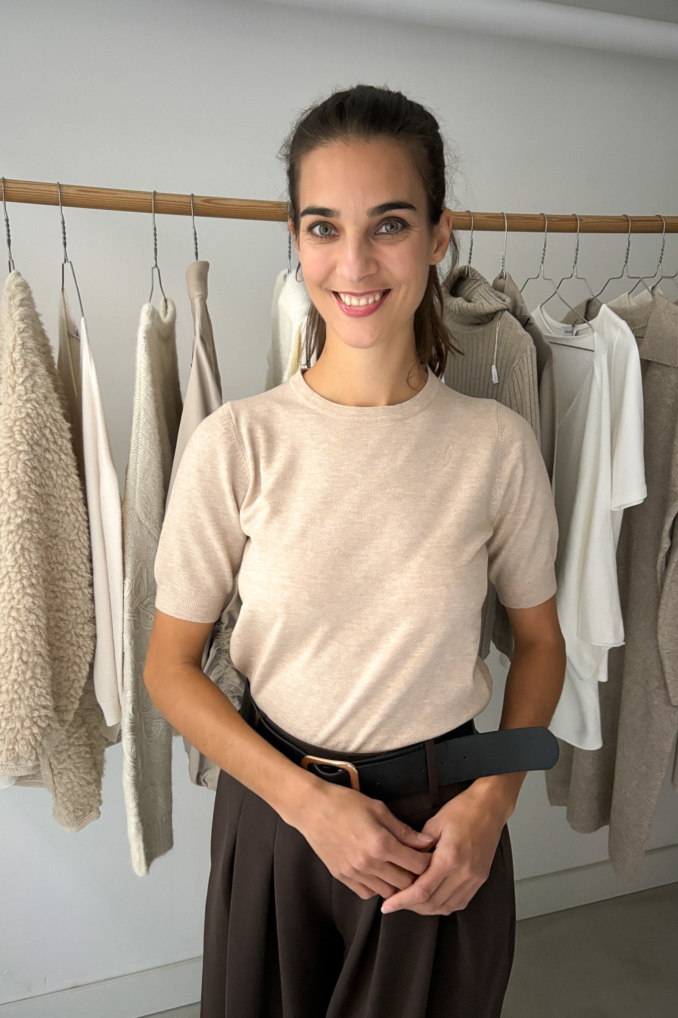 Tejeskávé színű, rövidujjas felső. Környakkal ellátott fazon. A felső karrésze passzos.
