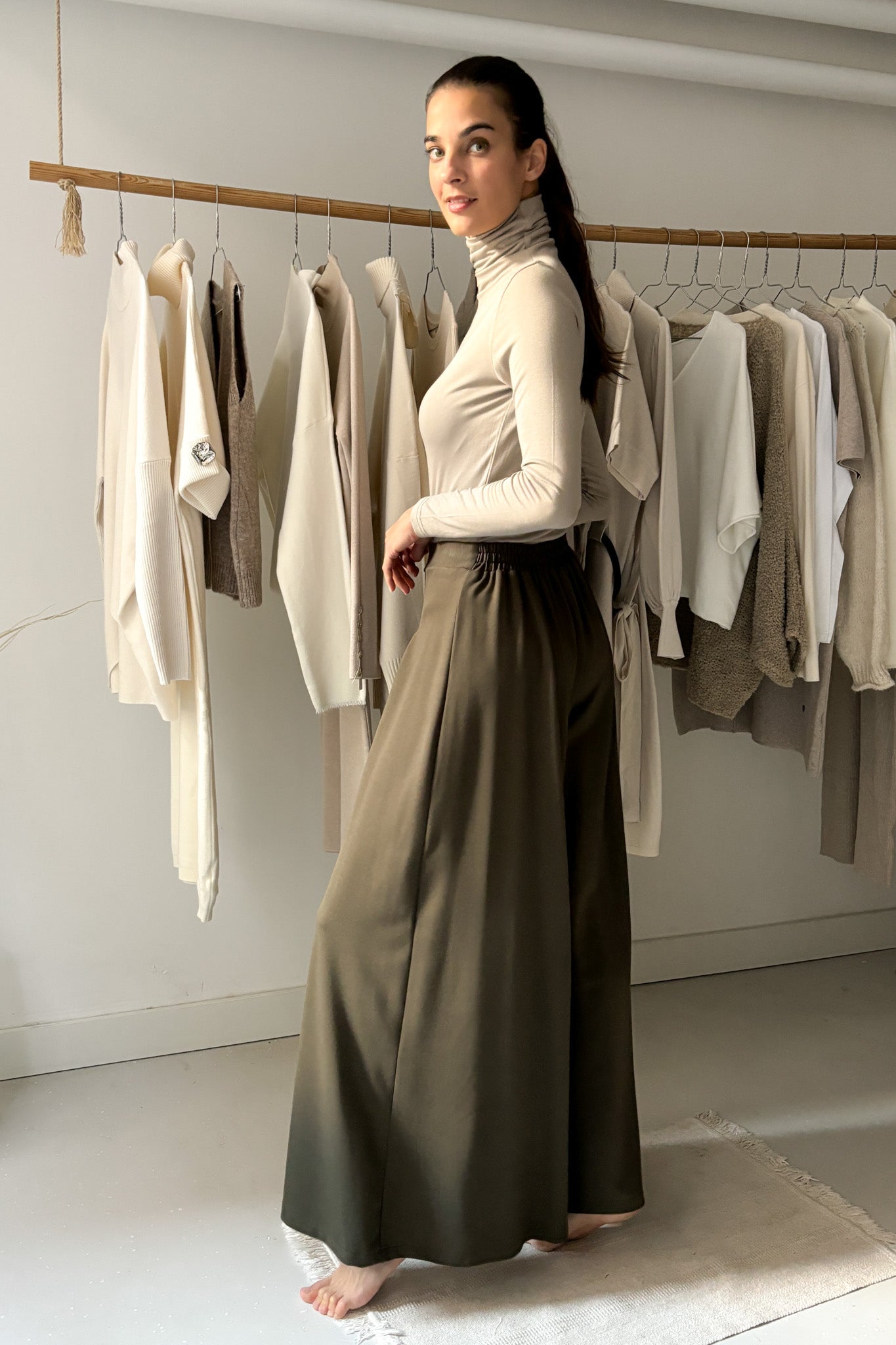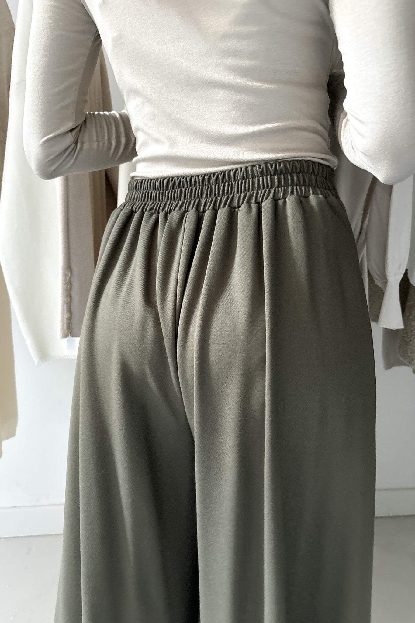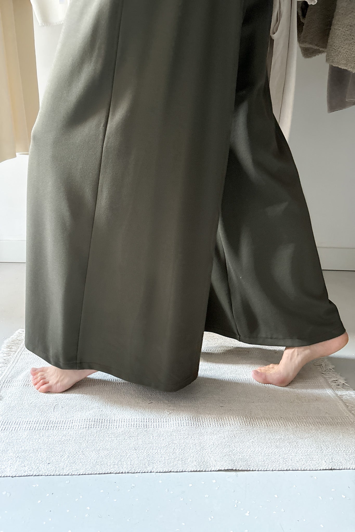 Vastagabb anyagból készült, viszkóz nadrág erdőzöld színben. Elölhajtásos, Hátul, derékrészen gumírozott. Bőszárú, lenge fazon.